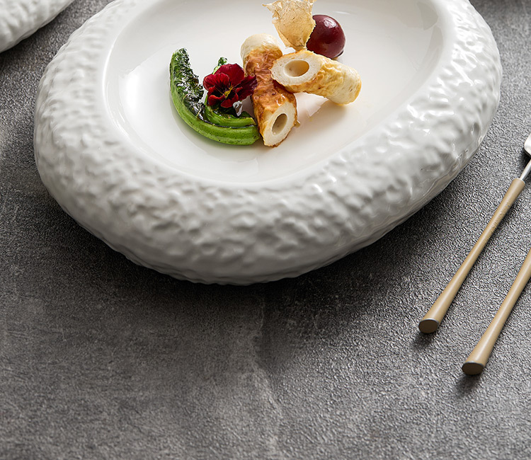 Hoa văn đá, món ăn nghệ thuật, đĩa rau nguội, cảm giác sáng tạo, nhà hàng khách sạn cao cấp, đĩa không đều, bếp riêng, bộ đồ ăn bằng gốm
