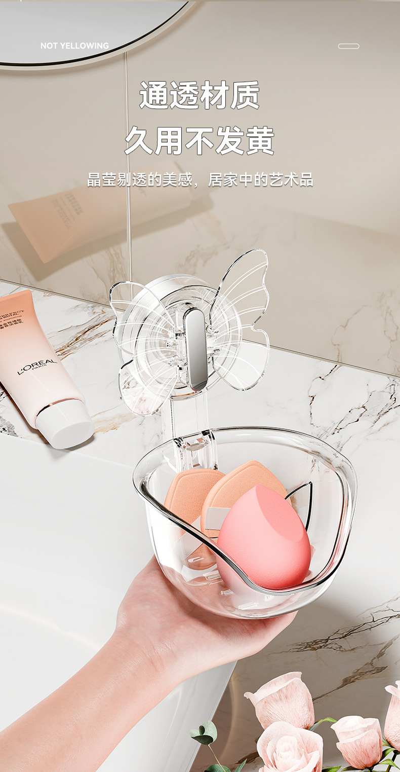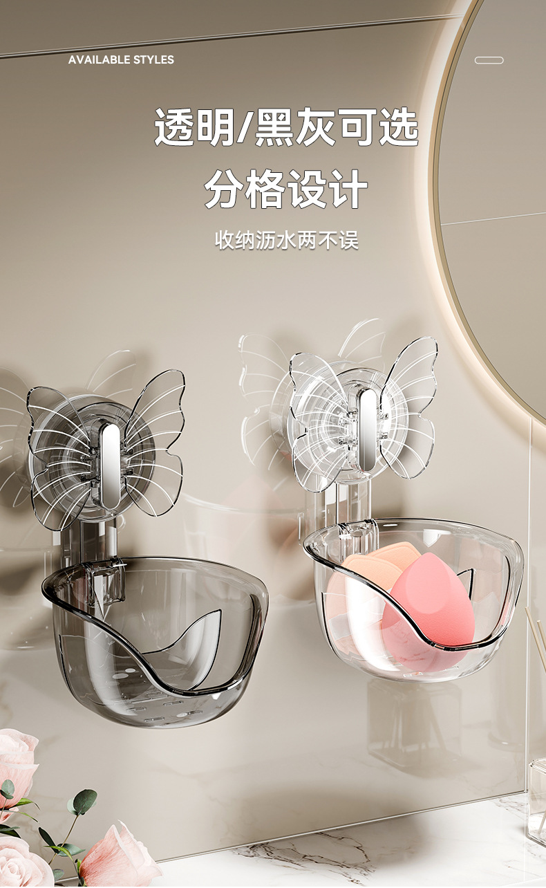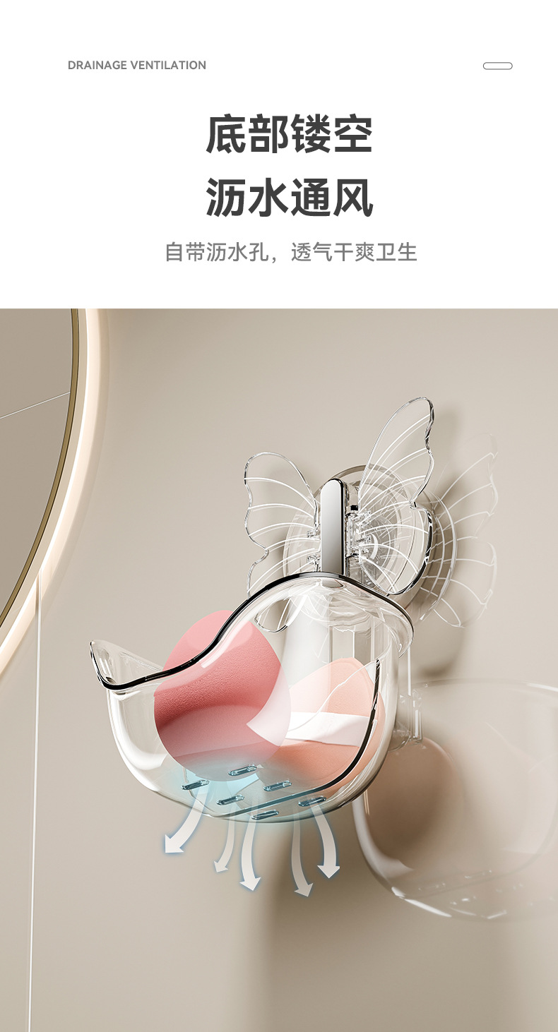 - Hộp đựng bông phấn mút bướm không cần đục lỗ, đệm hơi làm đẹp, hộp thoát nước, Giá để đồ treo tường