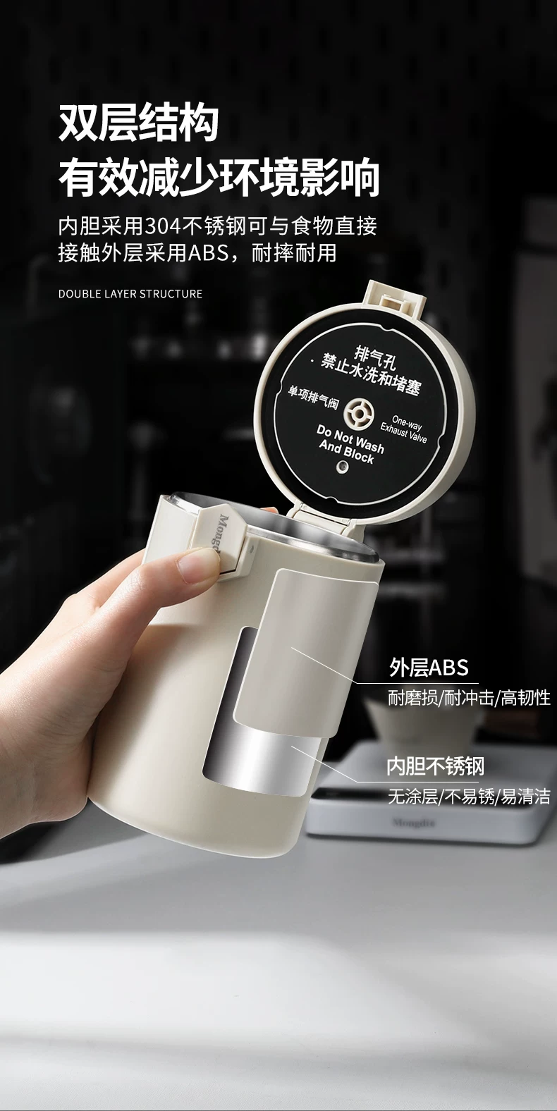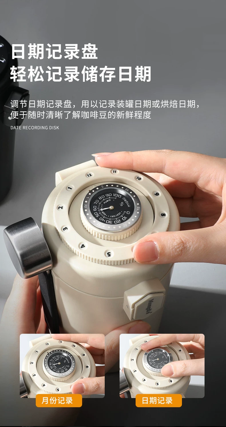 Hộp đựng cà phê hạt Mongdio kín hơi, hộp đựng bột cà phê, hộp đựng thực phẩm chân không đặc biệt có chức năng theo dõi độ ẩm, đạt tiêu chuẩn thực phẩm