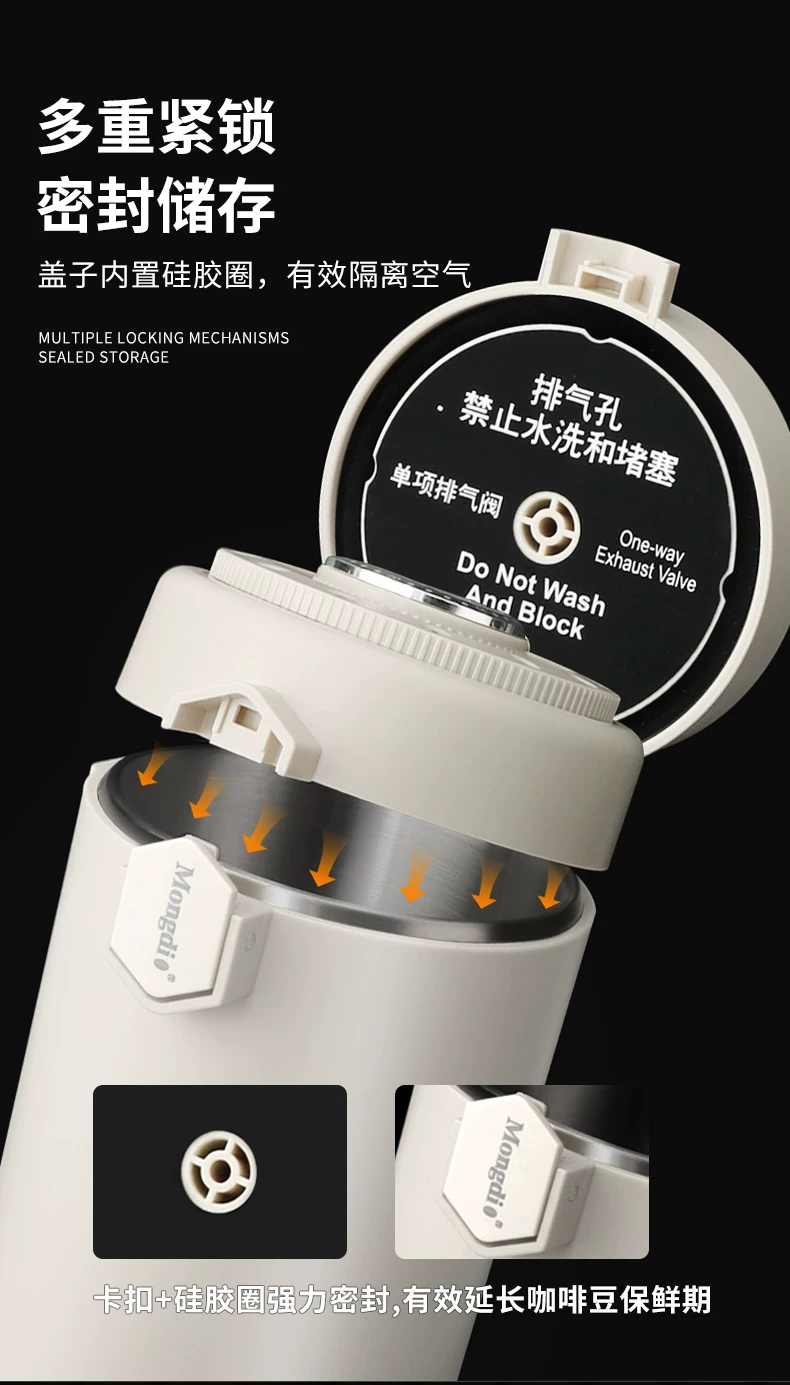 - Hộp đựng cà phê Mongdio kín hơi, hộp đựng bột cà phê đặc biệt, hộp đựng bằng thép không gỉ có chức năng theo dõi độ ẩm chân không