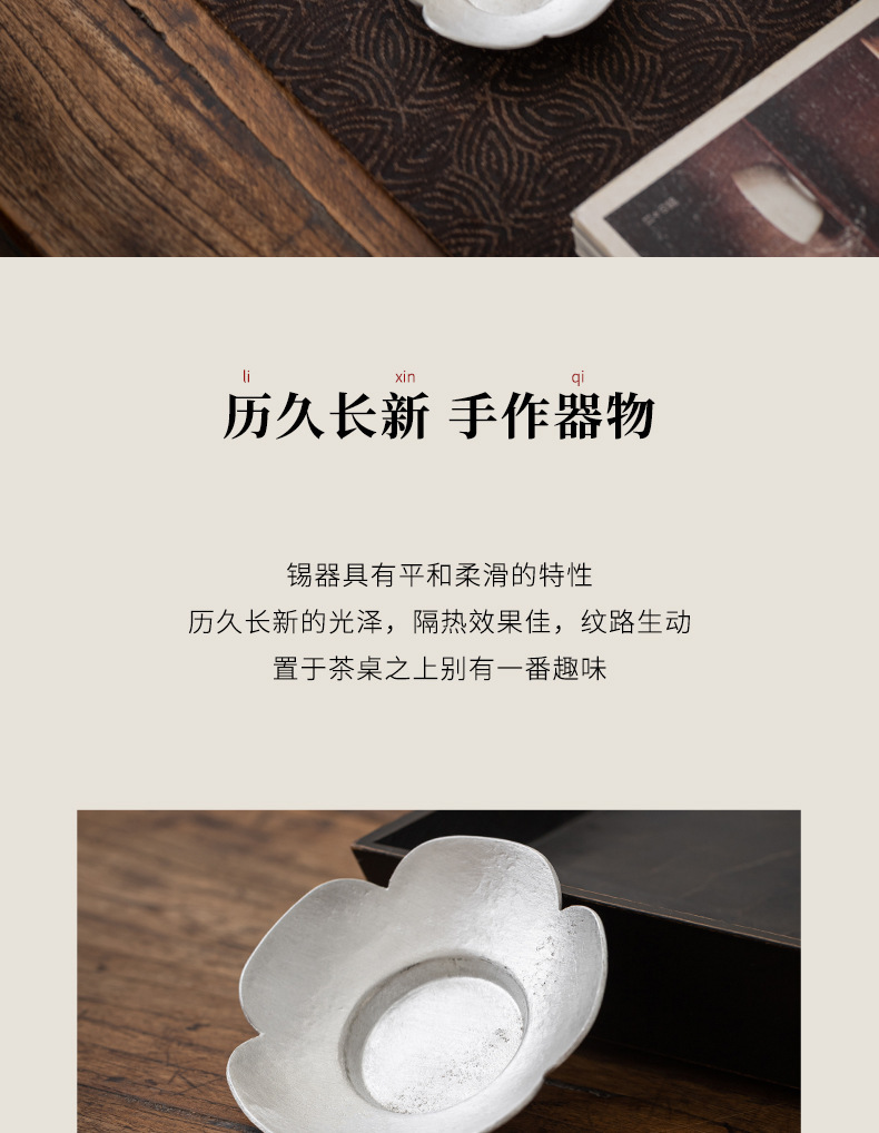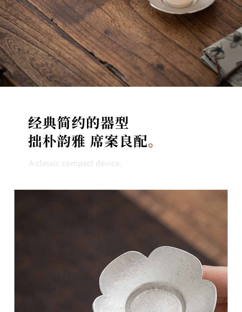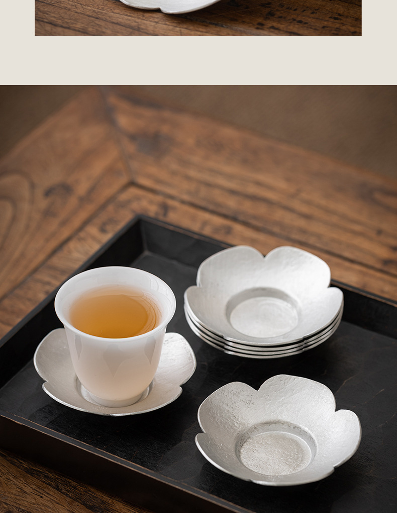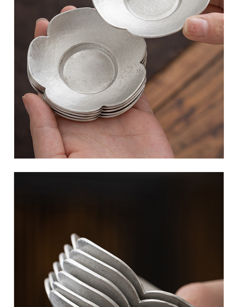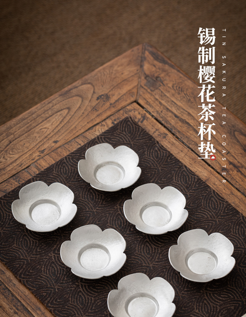 Hộp đựng cốc hoa thiếc nguyên chất, lót tách trà, phụ kiện trà đạo, lót cách nhiệt đĩa cốc, bán buôn thiền cổ điển thủ công