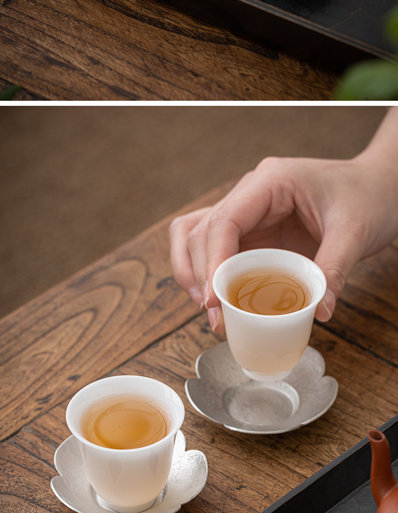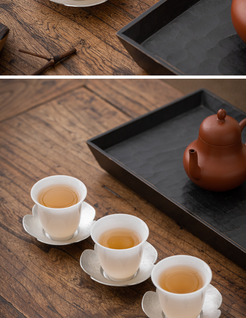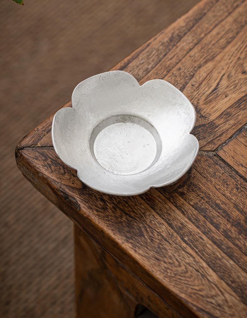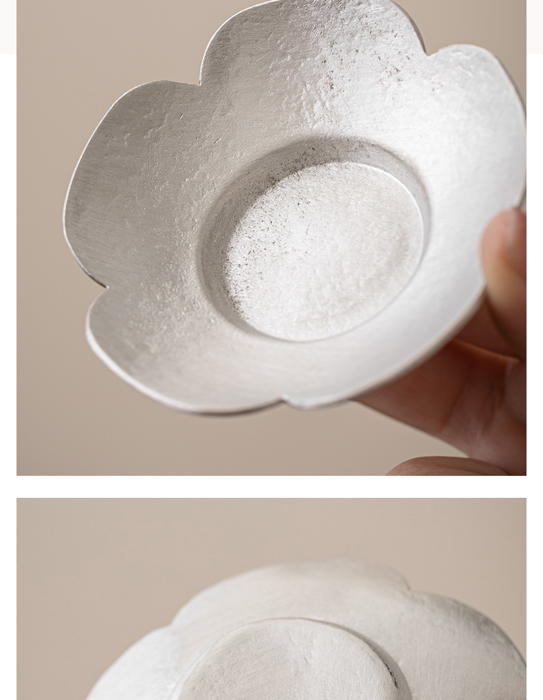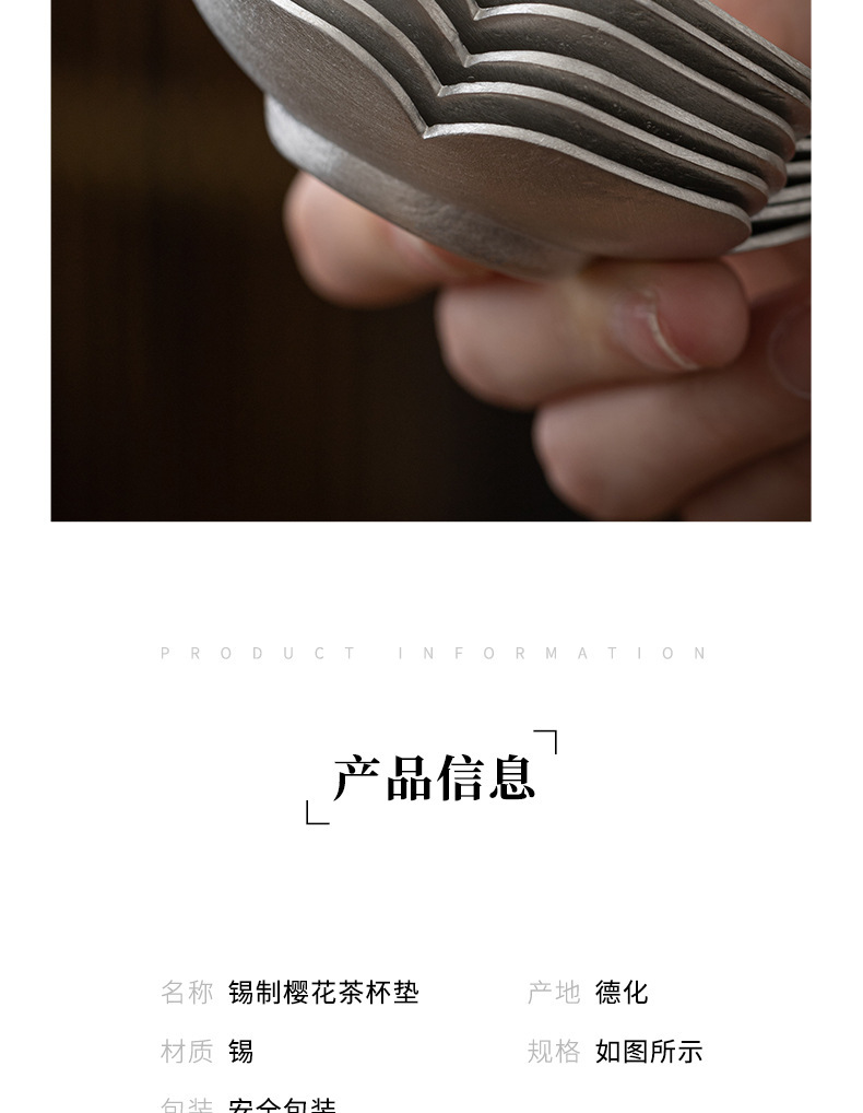 Hộp đựng cốc hoa thiếc nguyên chất, lót tách trà, phụ kiện trà đạo, lót cách nhiệt đĩa cốc, bán buôn thiền cổ điển thủ công