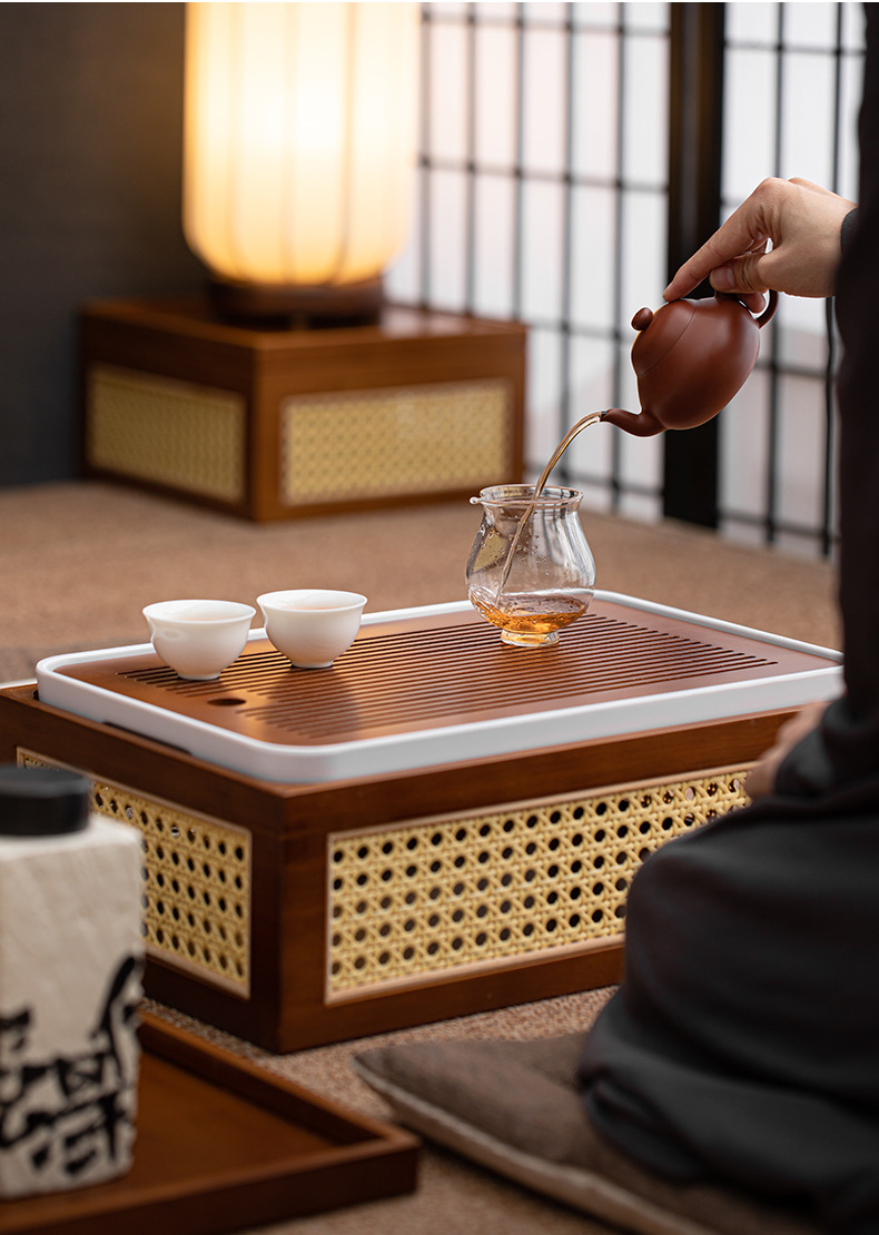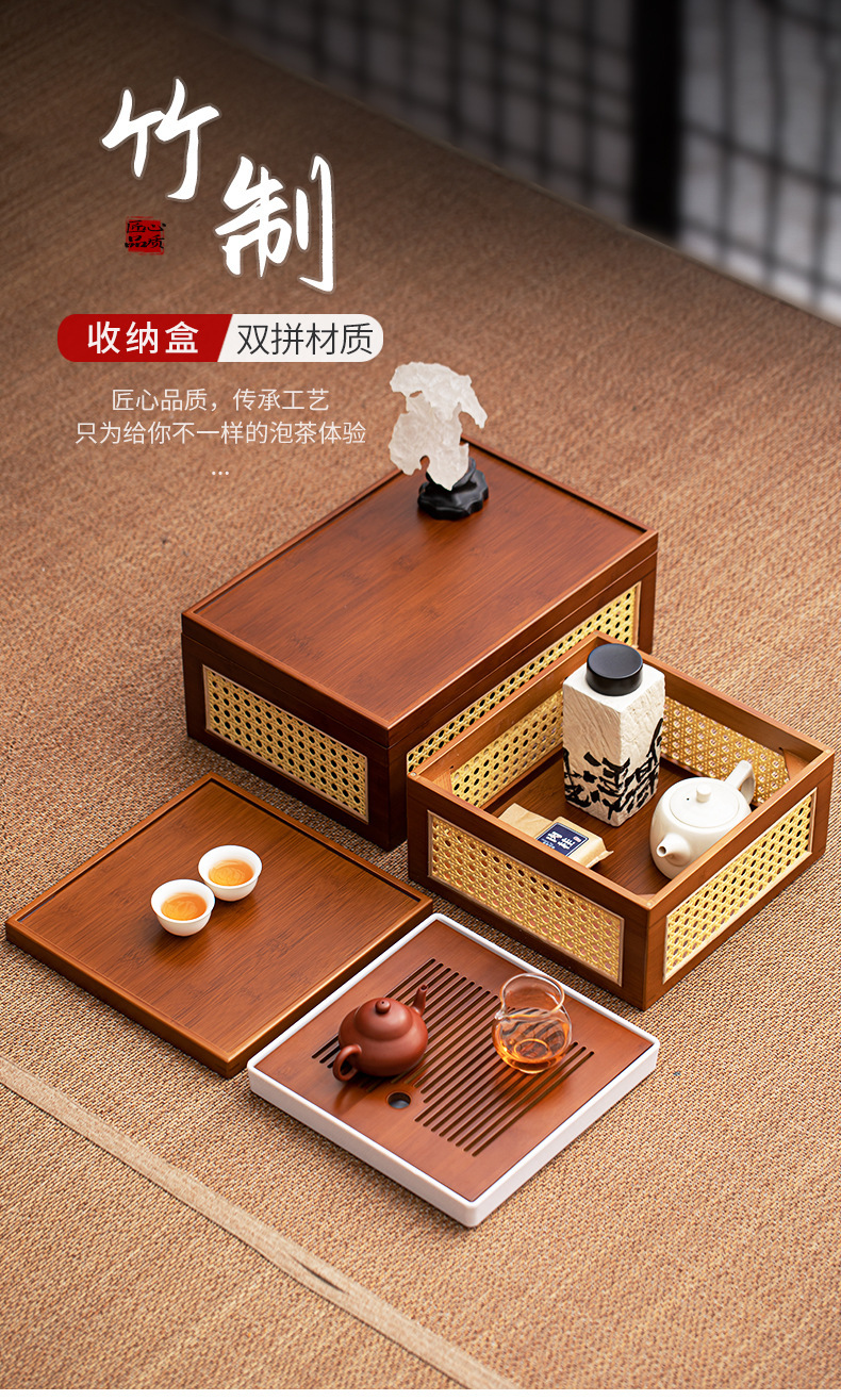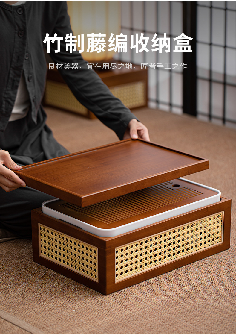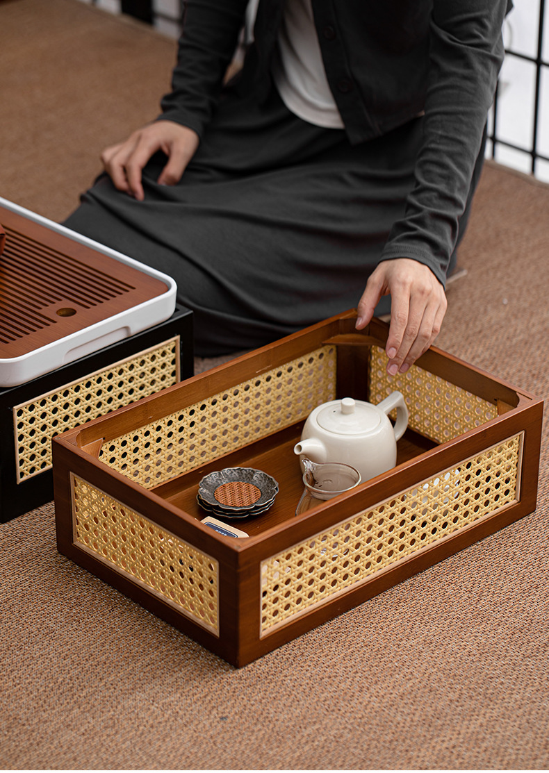 Hộp đựng đồ đa năng gia dụng khay trà bộ trà kungfu đan mây tre đan kiểu Nhật bộ khay trà khay đựng đồ cổ điển