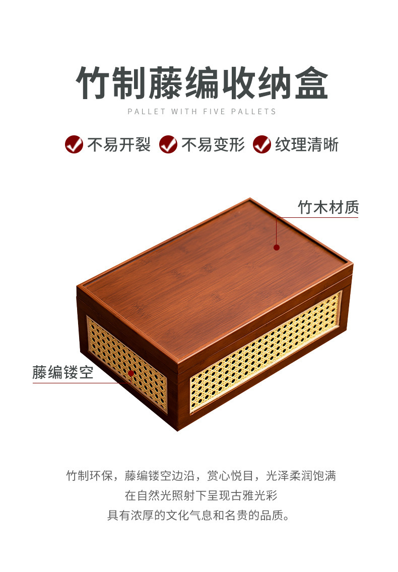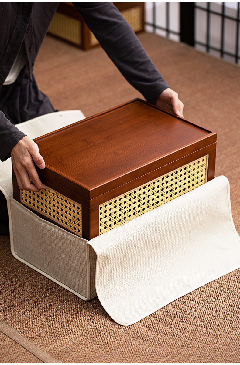 - Hộp đựng đồ đa năng gia dụng khay trà bộ trà kungfu đan mây tre đan kiểu Nhật bộ khay trà khay đựng đồ cổ điển