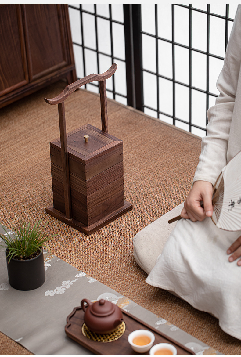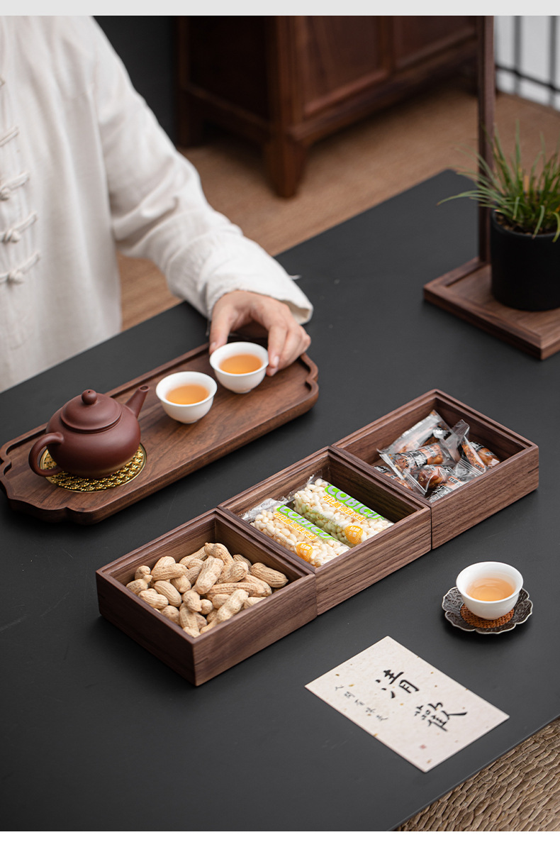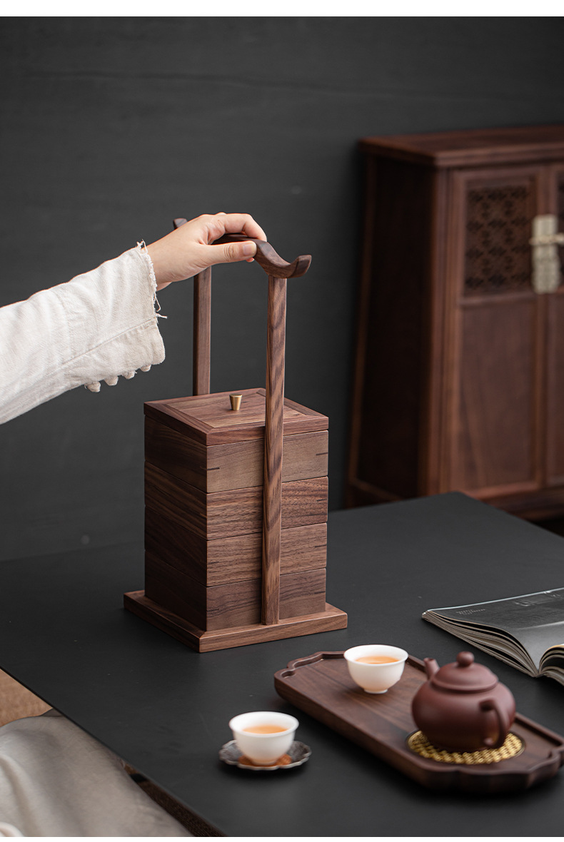 Hộp đựng đồ uống giải khát bằng gỗ óc chó Giỏ đựng trà trái cây kiểu Trung Quốc cổ điển Hộp đựng trà cầm tay Phụ kiện bộ trà Kung Fu
