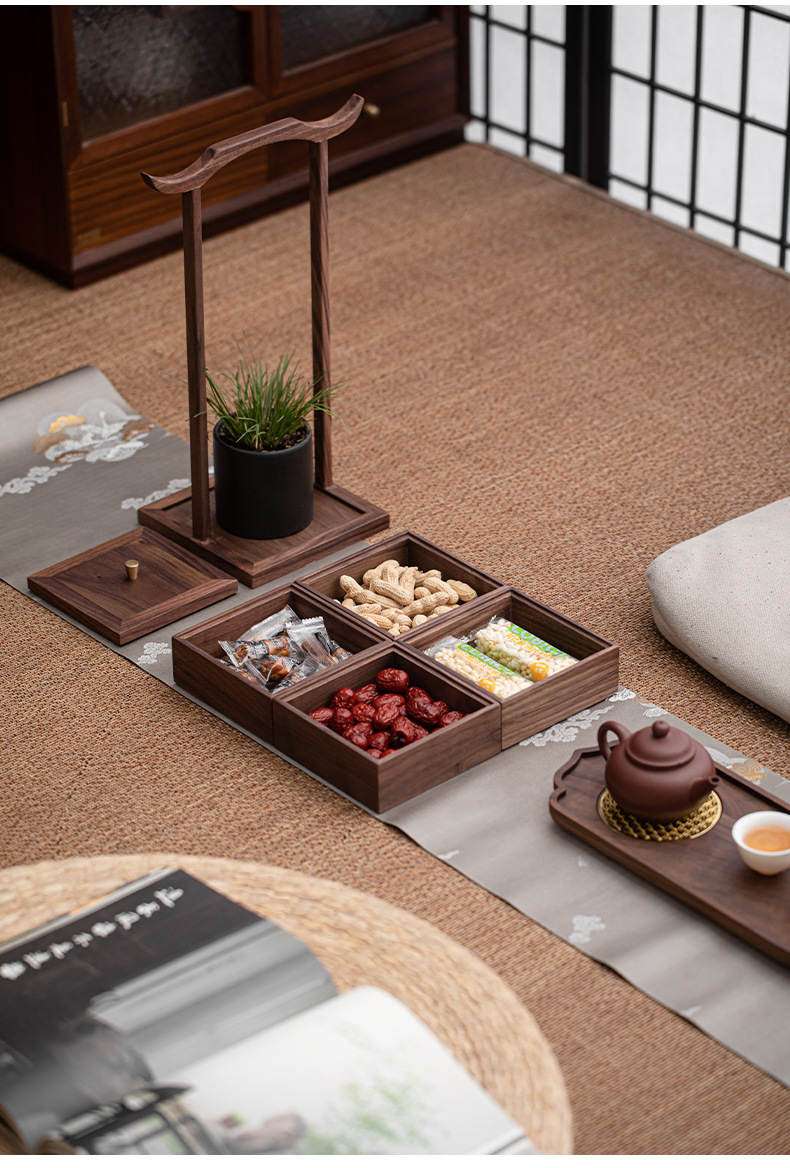 - Hộp đựng đồ uống giải khát bằng gỗ óc chó Giỏ đựng trà trái cây kiểu Trung Quốc cổ điển Hộp đựng trà cầm tay Phụ kiện bộ trà Kung Fu