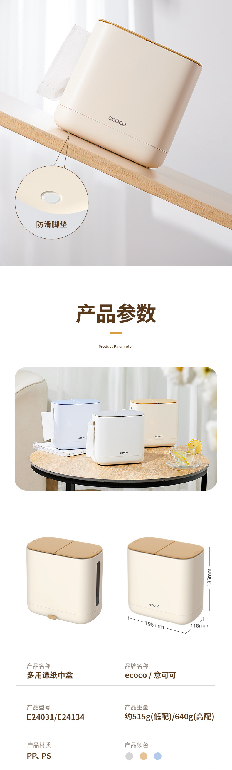 - Hộp đựng khăn giấy ecoco cao cấp cảm giác kem phong cách gia dụng phòng khách đa năng để bàn hộp đựng rác 2 trong 1