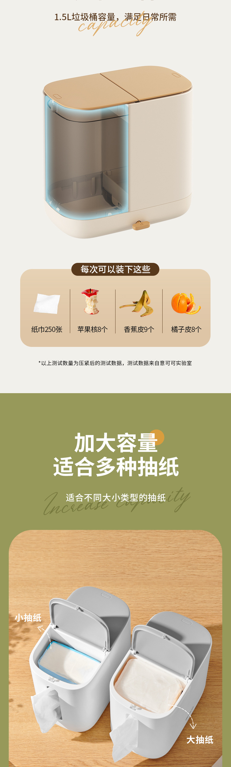Hộp đựng khăn giấy ecoco cao cấp cảm giác kem phong cách gia dụng phòng khách đa năng để bàn hộp đựng rác 2 trong 1
