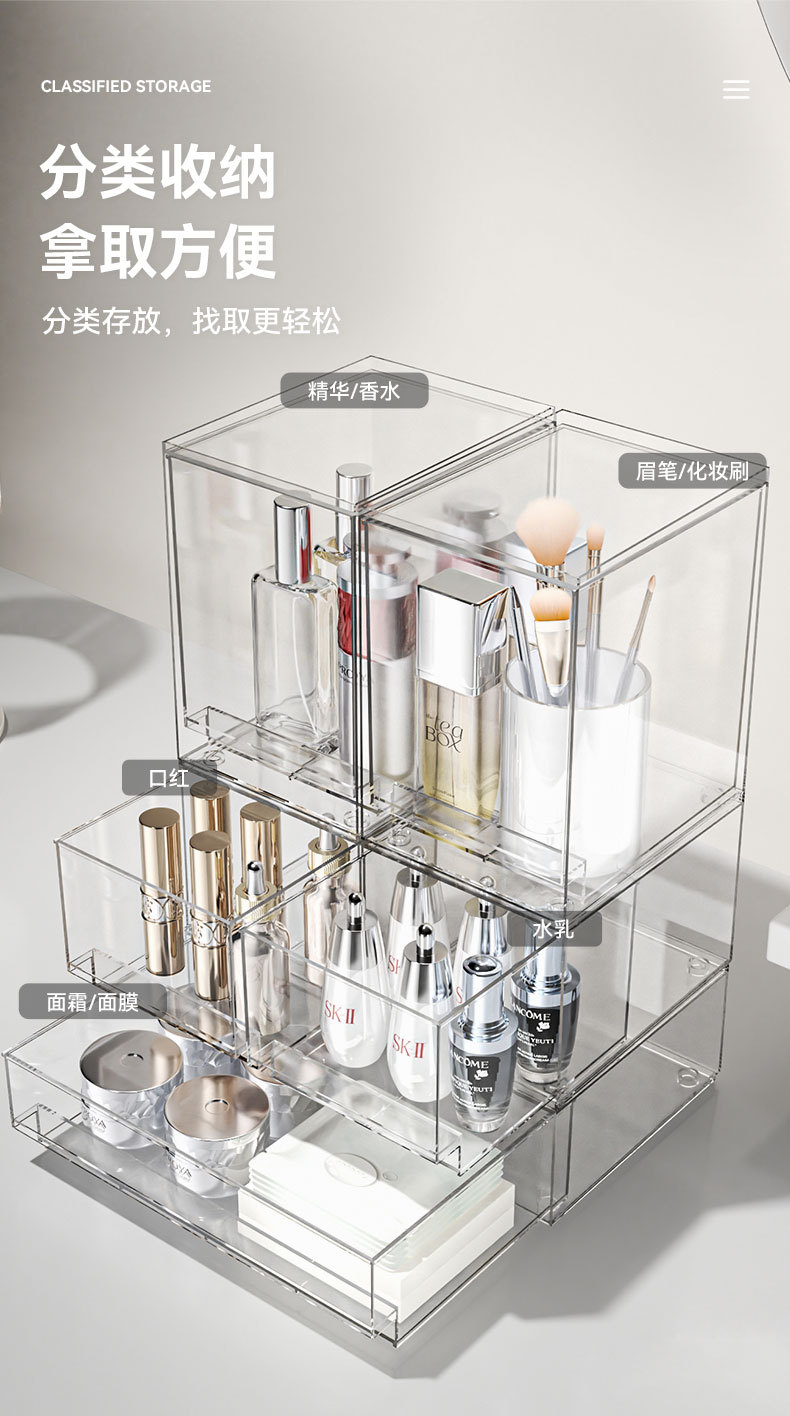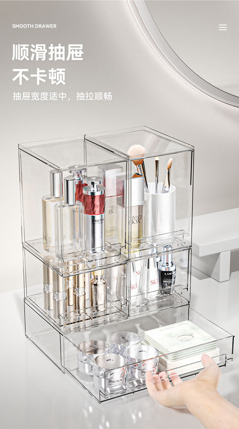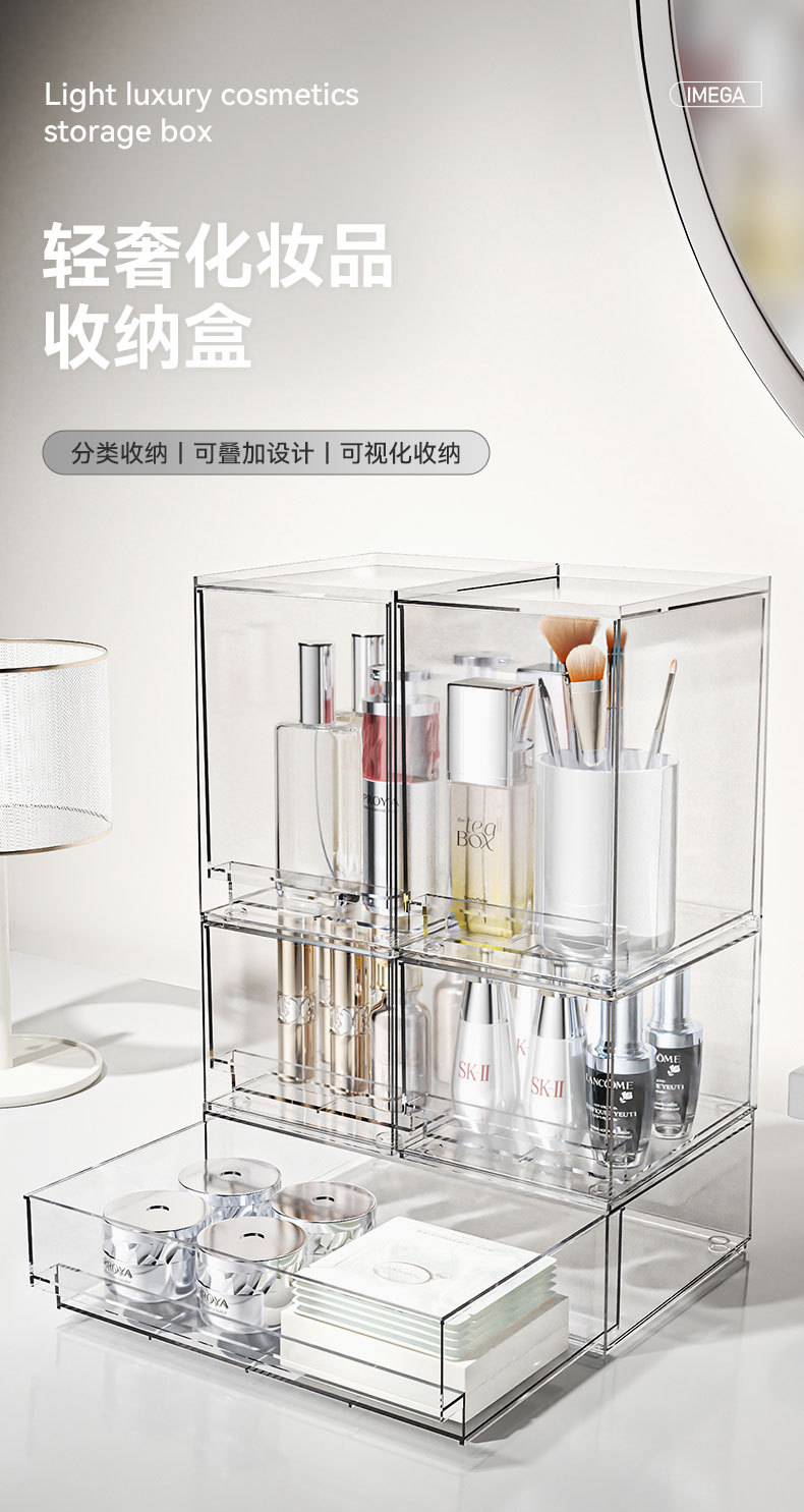 - Hộp đựng mỹ phẩm để bàn trong suốt, ngăn kéo chống bụi dung tích lớn, giá đựng trang điểm, hộp hoàn thiện mặt nạ