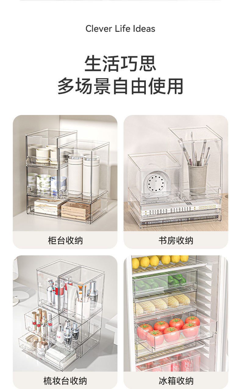 可以单独使用,亦可组合DIY使用,防尘高透,可放化妆品,杂物等