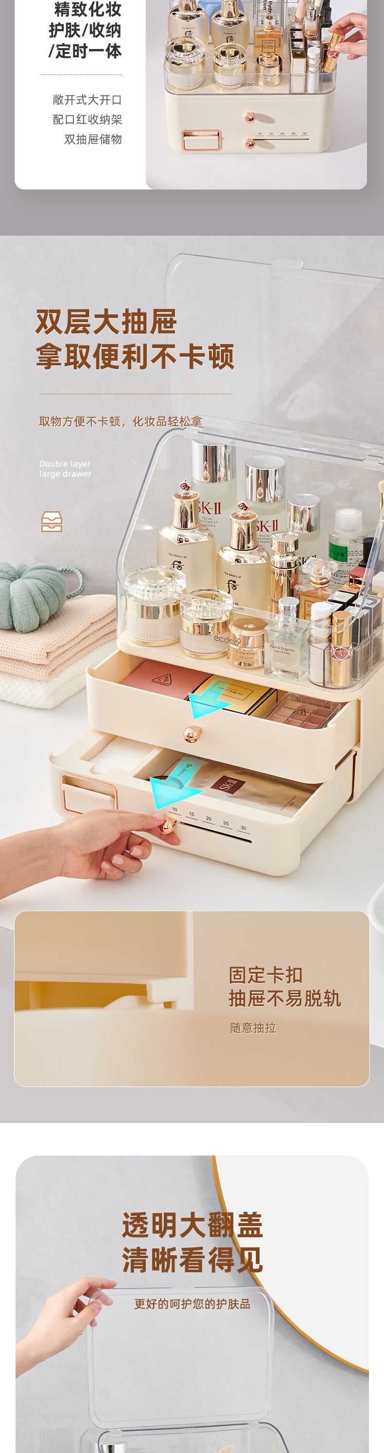 - Hộp đựng mỹ phẩm, hộp đựng mỹ phẩm dung tích lớn chống bụi thời gian, Hộp đựng đồ để bàn, bàn trang điểm, giá đựng sản phẩm chăm sóc da