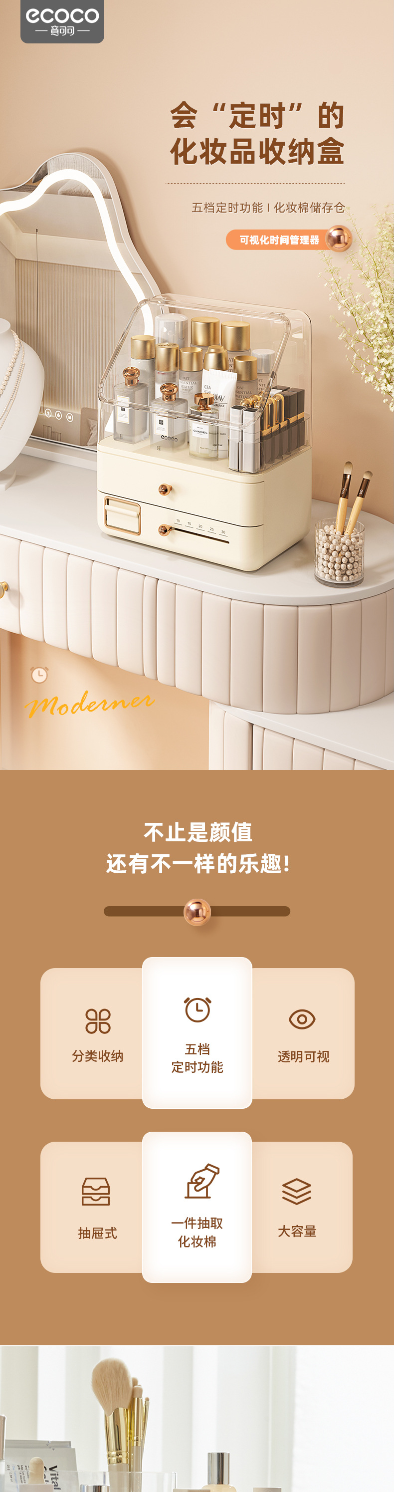 Hộp đựng mỹ phẩm, hộp đựng mỹ phẩm dung tích lớn chống bụi thời gian, Hộp đựng đồ để bàn, bàn trang điểm, giá đựng sản phẩm chăm sóc da
