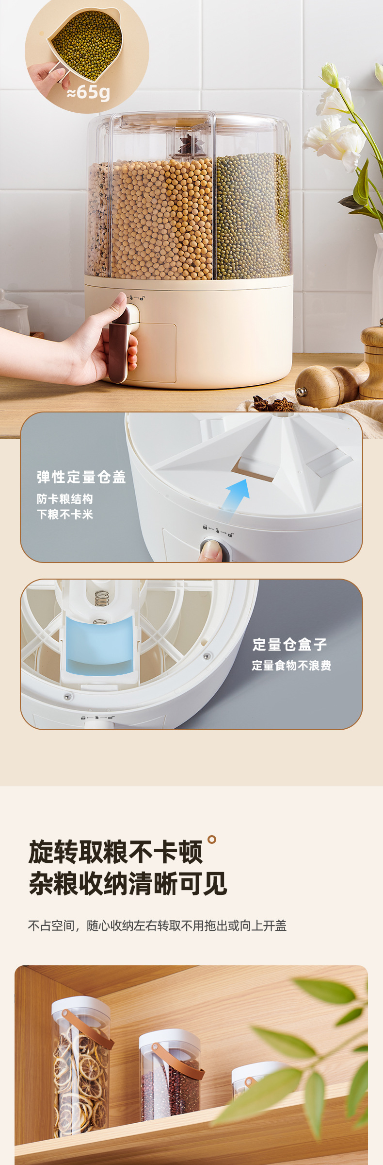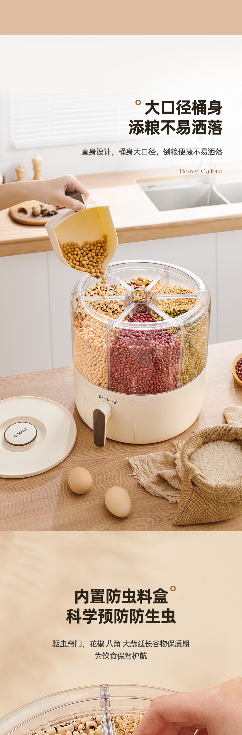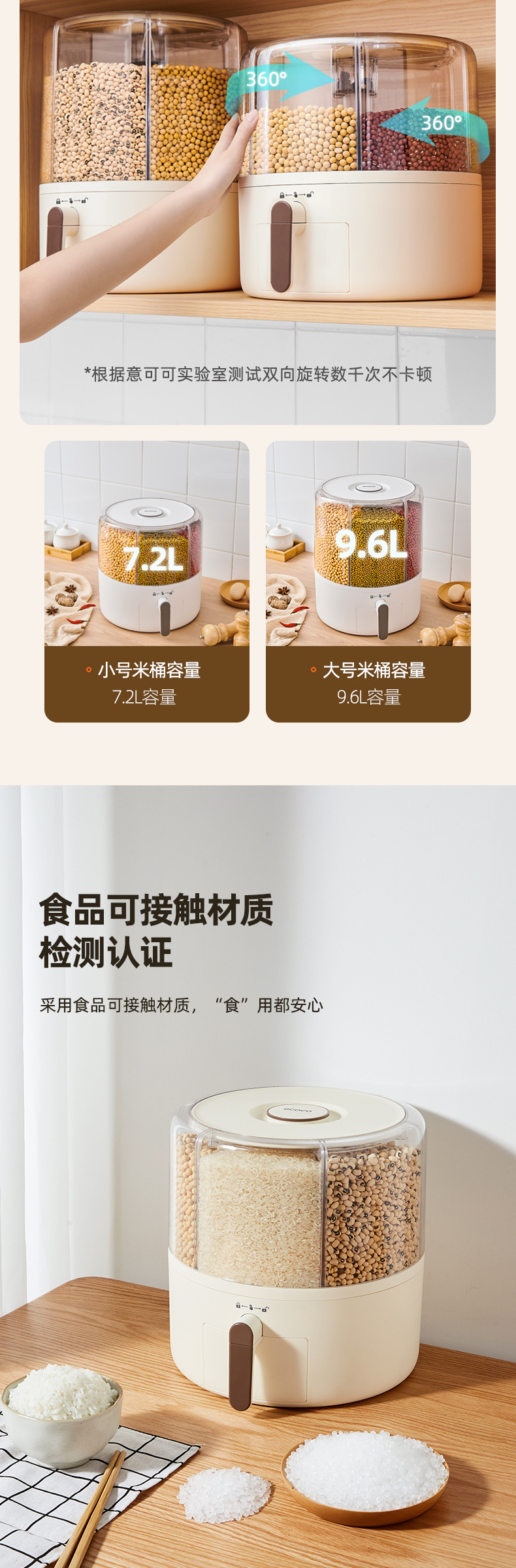 - Hộp Đựng Ngũ Cốc Nguyên Hạt, Thùng gạo dạng lưới xoay, Thùng gạo kín chống côn trùng, chống ẩm, Thùng gạo phân cách gia đình