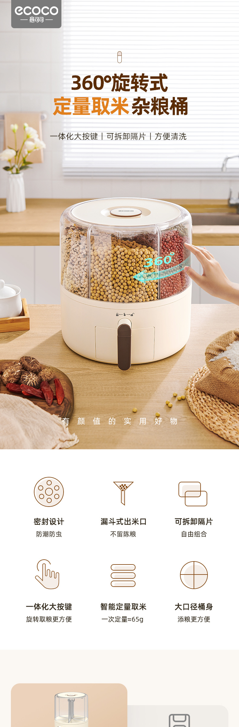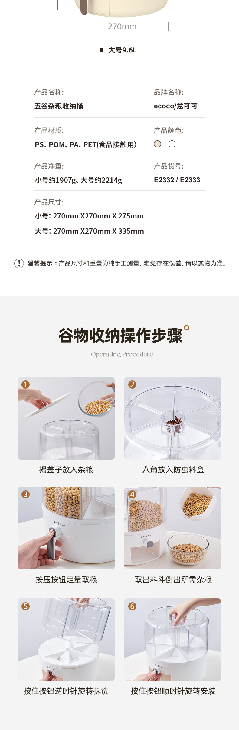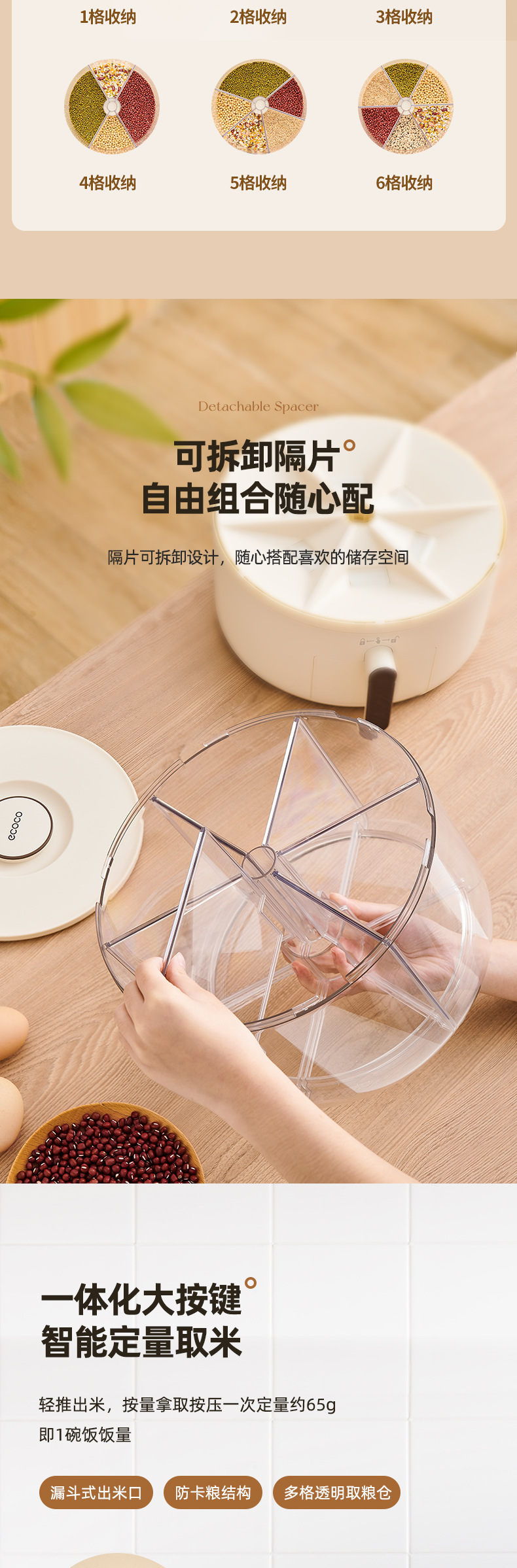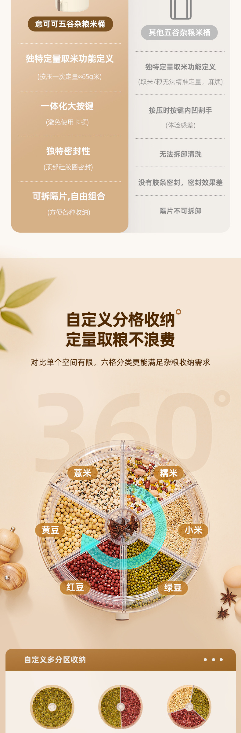 - Hộp Đựng Ngũ Cốc Nguyên Hạt, Thùng gạo dạng lưới xoay, Thùng gạo kín chống côn trùng, chống ẩm, Thùng gạo phân cách gia đình