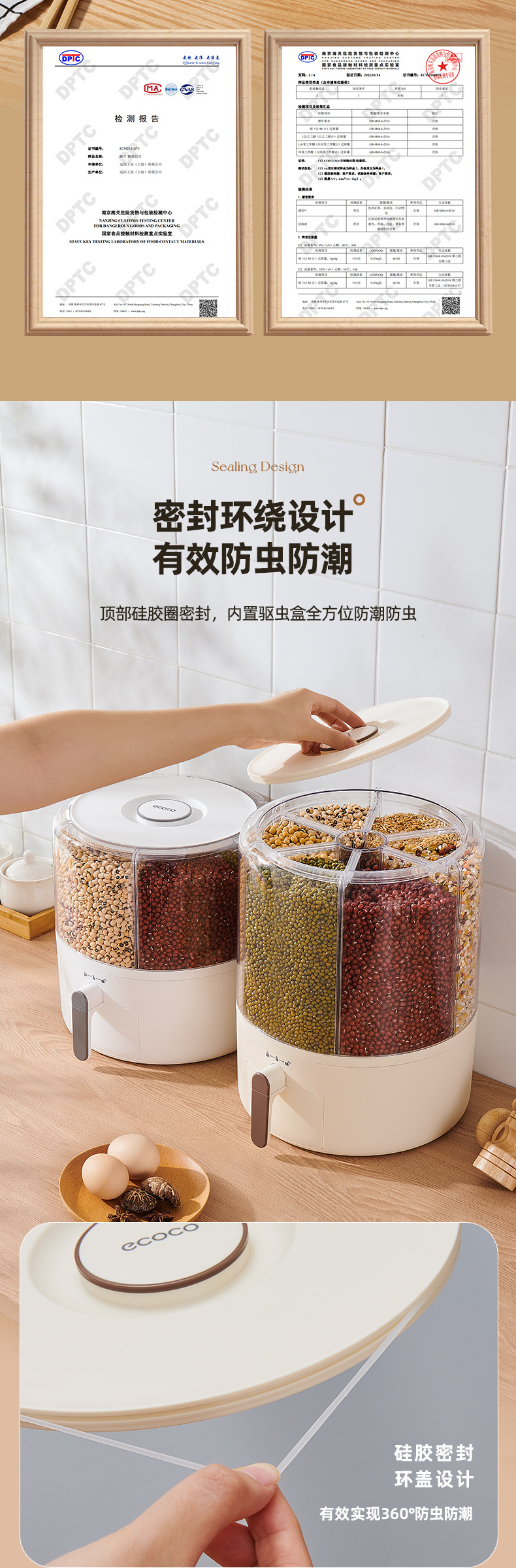 Hộp Đựng Ngũ Cốc Nguyên Hạt, Thùng gạo dạng lưới xoay, Thùng gạo kín chống côn trùng, chống ẩm, Thùng gạo phân cách gia đình