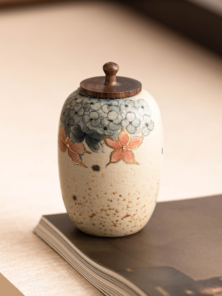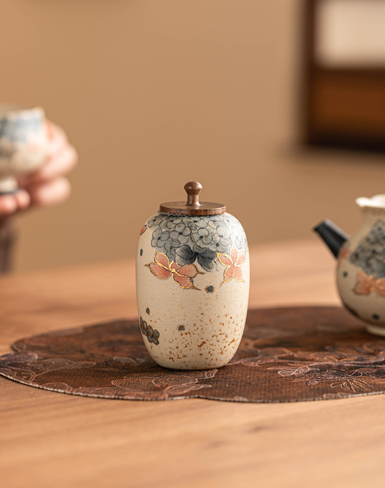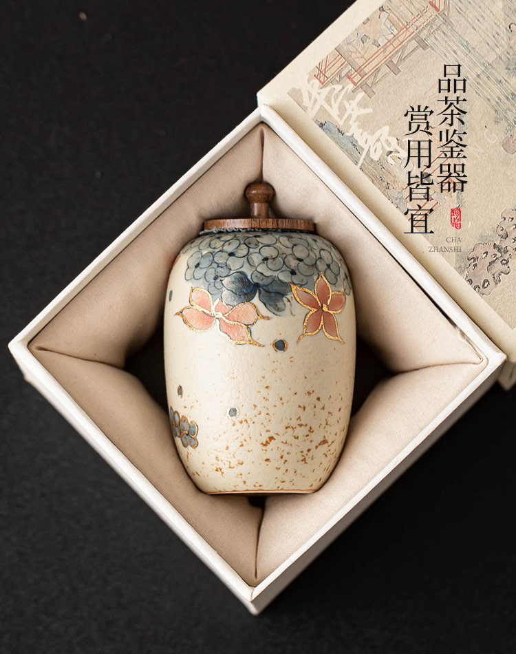 - Hộp đựng trà bằng gốm sứ màu xanh và trắng, bộ trà sáng tạo sơn vàng, hộp đựng trà chống ẩm