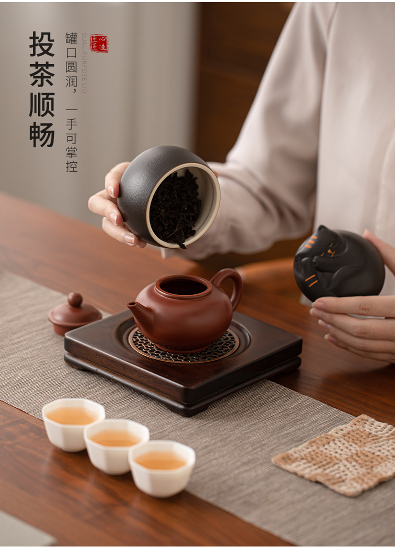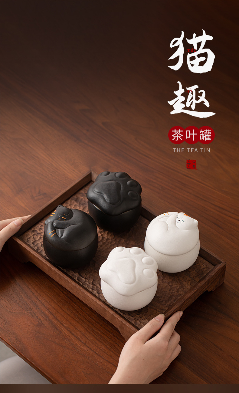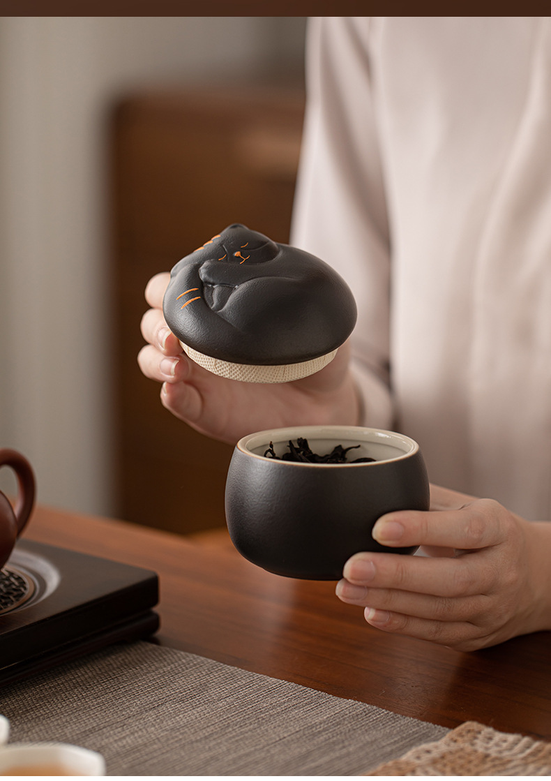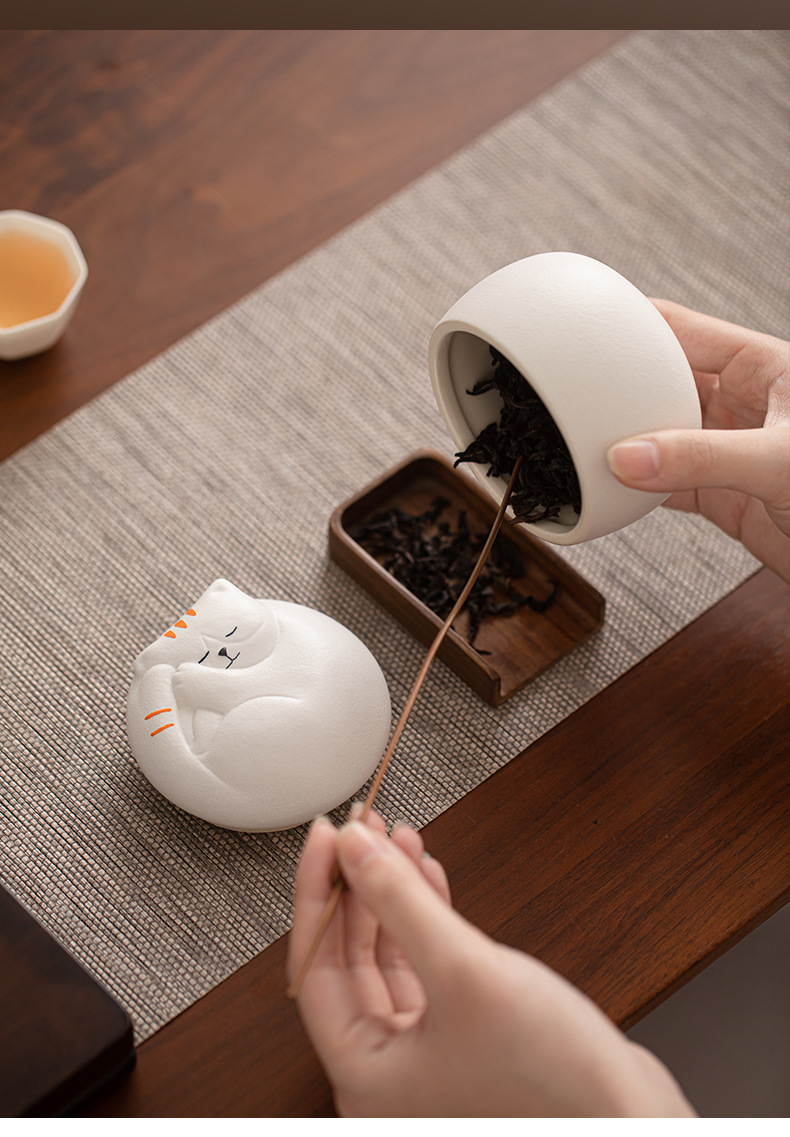 - Hộp đựng trà gốm sứ dễ thương mèo, hộp kín chống ẩm, hộp đựng trà du lịch cỡ nhỏ cầm tay, hộp đựng trà