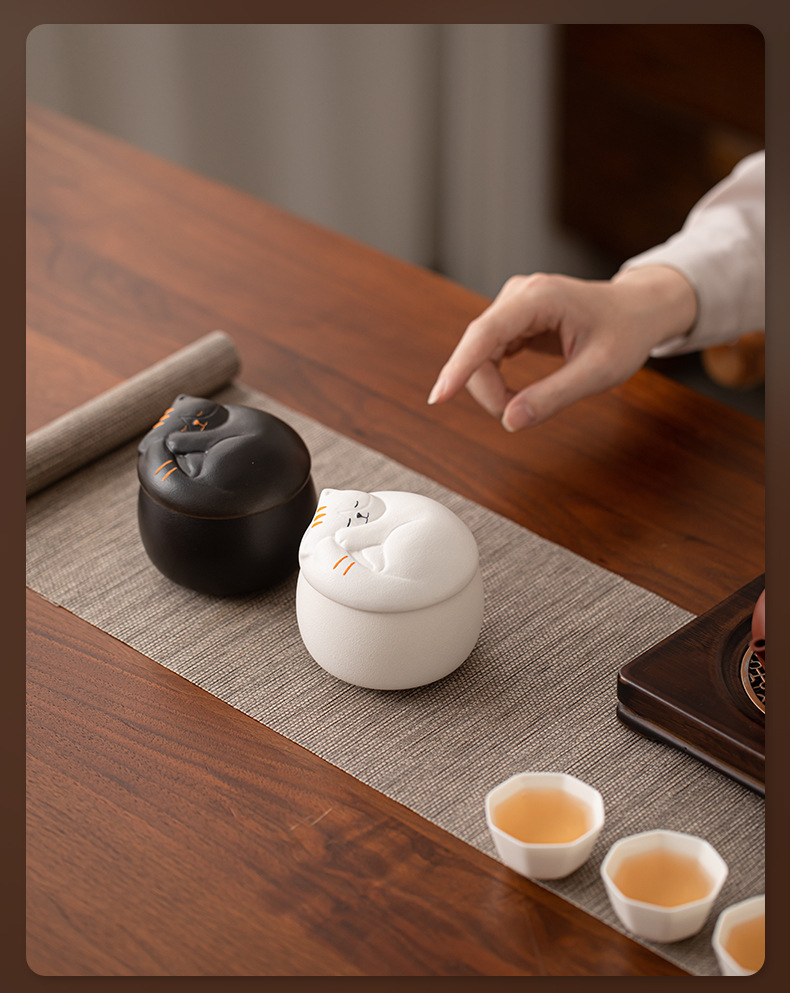 Hộp đựng trà gốm sứ dễ thương mèo, hộp kín chống ẩm, hộp đựng trà du lịch cỡ nhỏ cầm tay, hộp đựng trà
