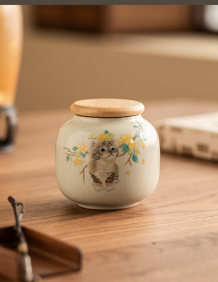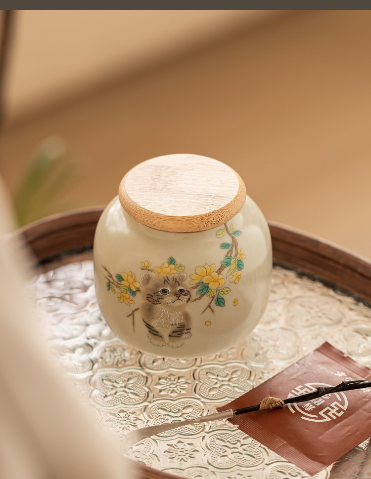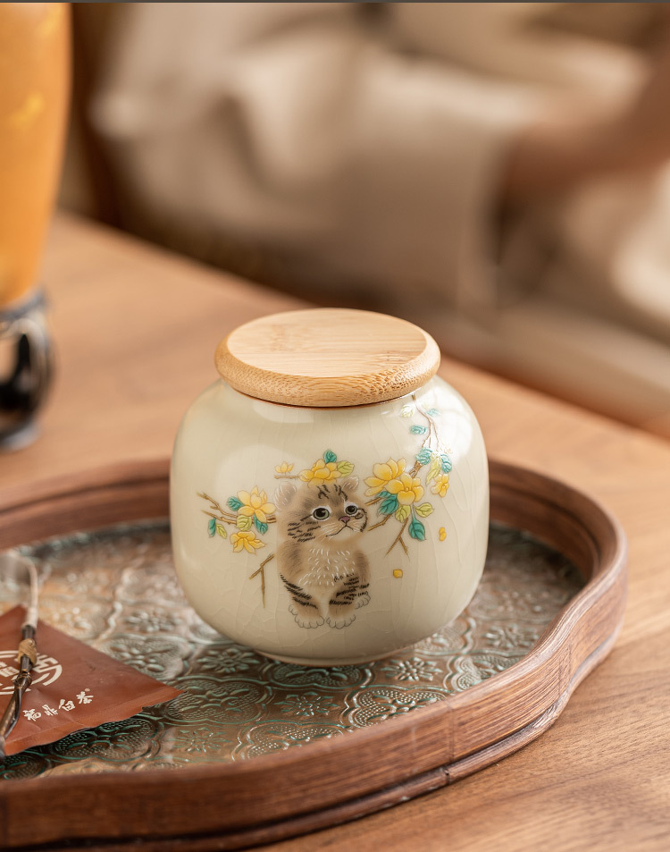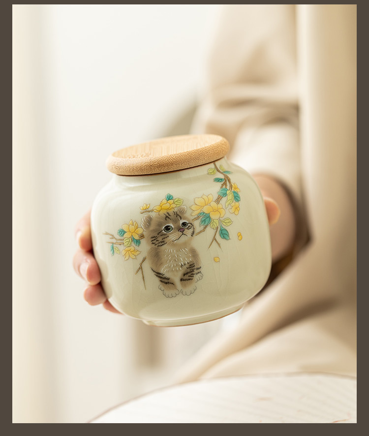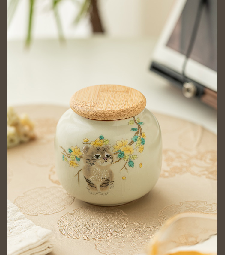 Hộp đựng trà gốm sứ Mengmao, hộp nhỏ, hộp đựng trà di động, Hộp đựng trà kín chống ẩm, hộp đựng trà