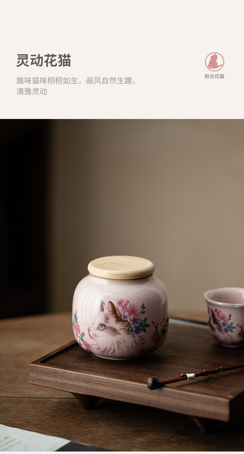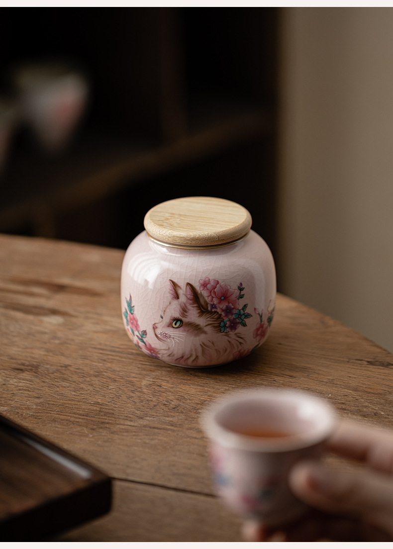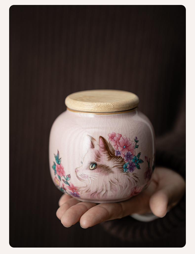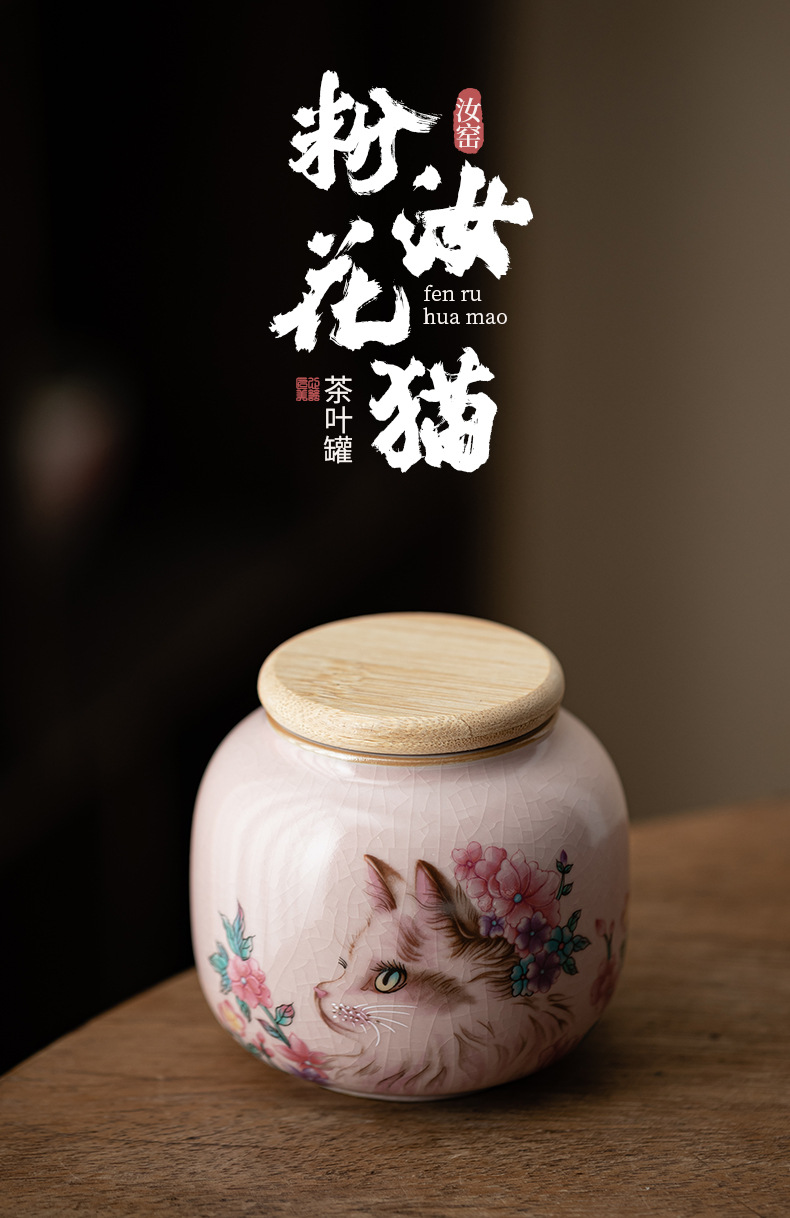 Hộp đựng trà mèo hoa lò Fenru, hộp đựng trà nhỏ bằng gốm, hộp kín chống ẩm, trà đen, trà xanh, kho trà Pu'er