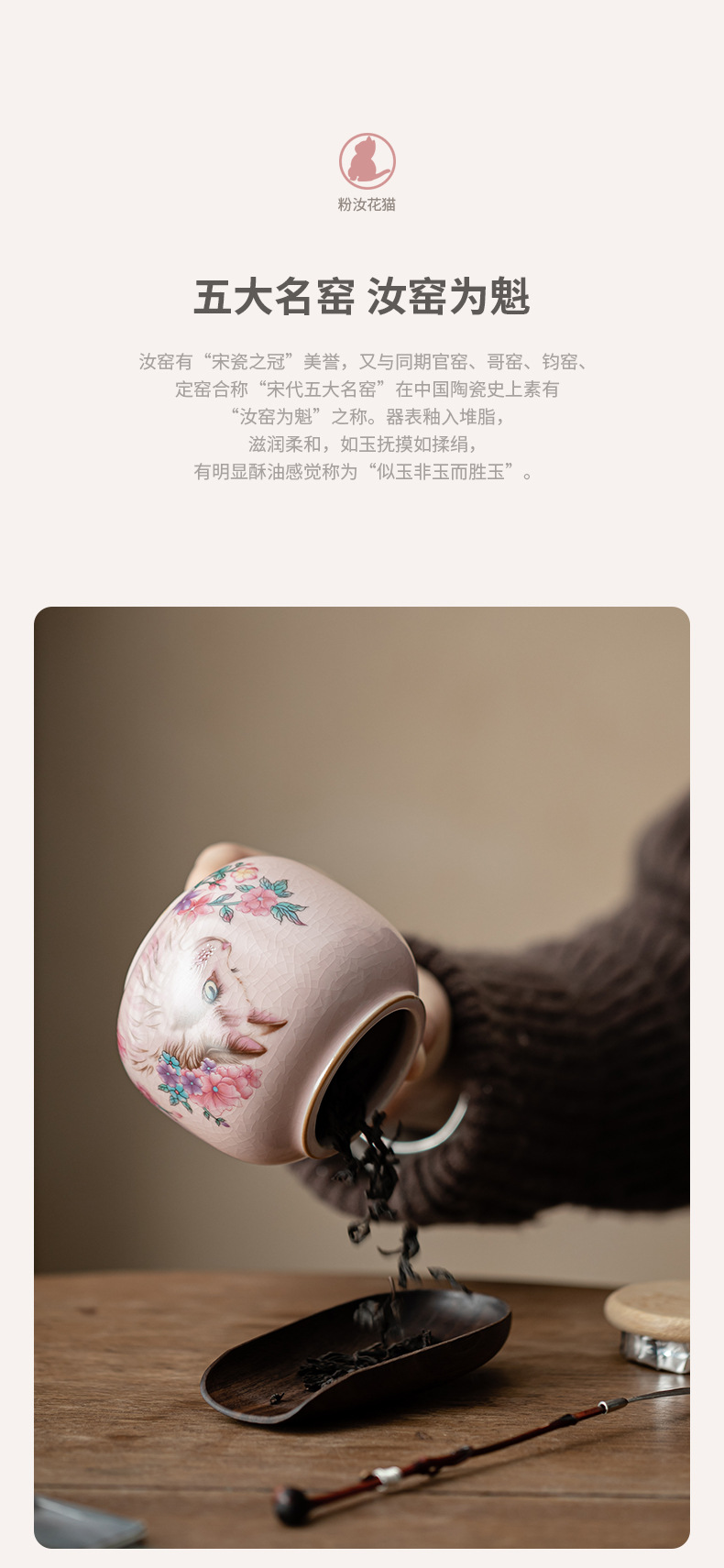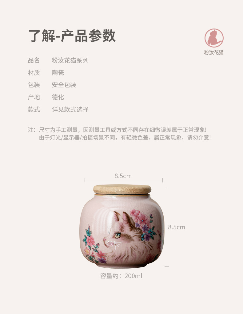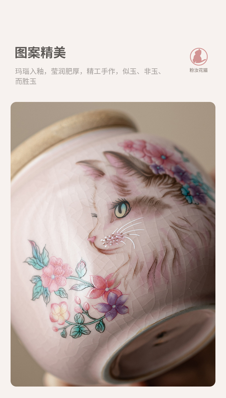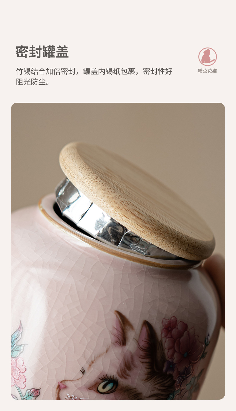 Hộp đựng trà mèo hoa lò Fenru, hộp đựng trà nhỏ bằng gốm, hộp kín chống ẩm, trà đen, trà xanh, kho trà Pu'er