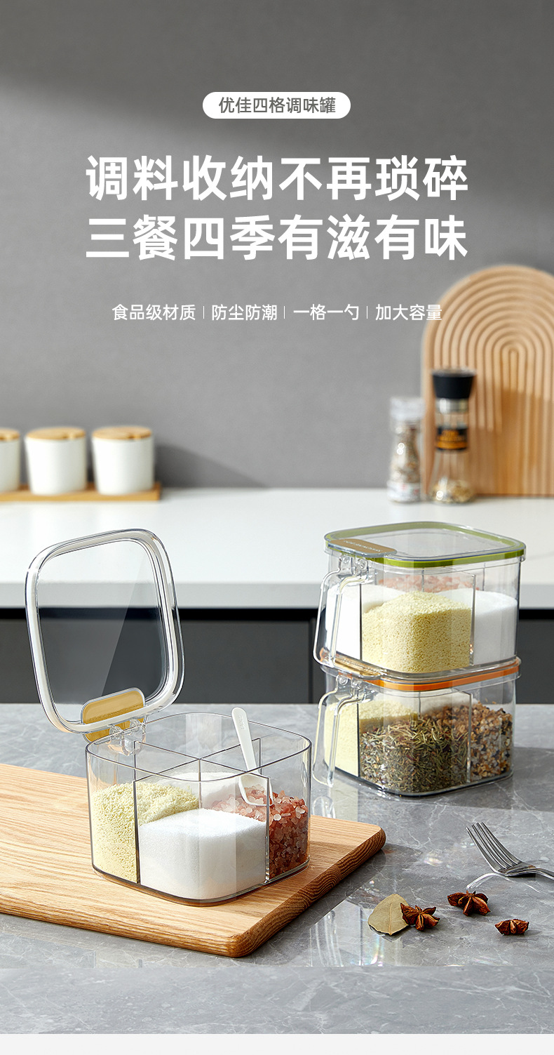 Hộp gia vị bốn ngăn Hộp gia vị đa chức năng 2023 ngăn gia vị gia đình