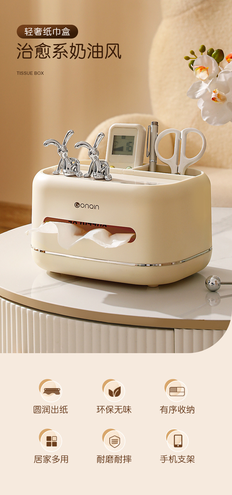 Hộp Giấy hút phong cách kem gia dụng phòng khách Bàn cà phê phòng ăn sáng tạo đơn giản đa chức năng điều khiển từ xa Hộp khăn giấy đựng đồ