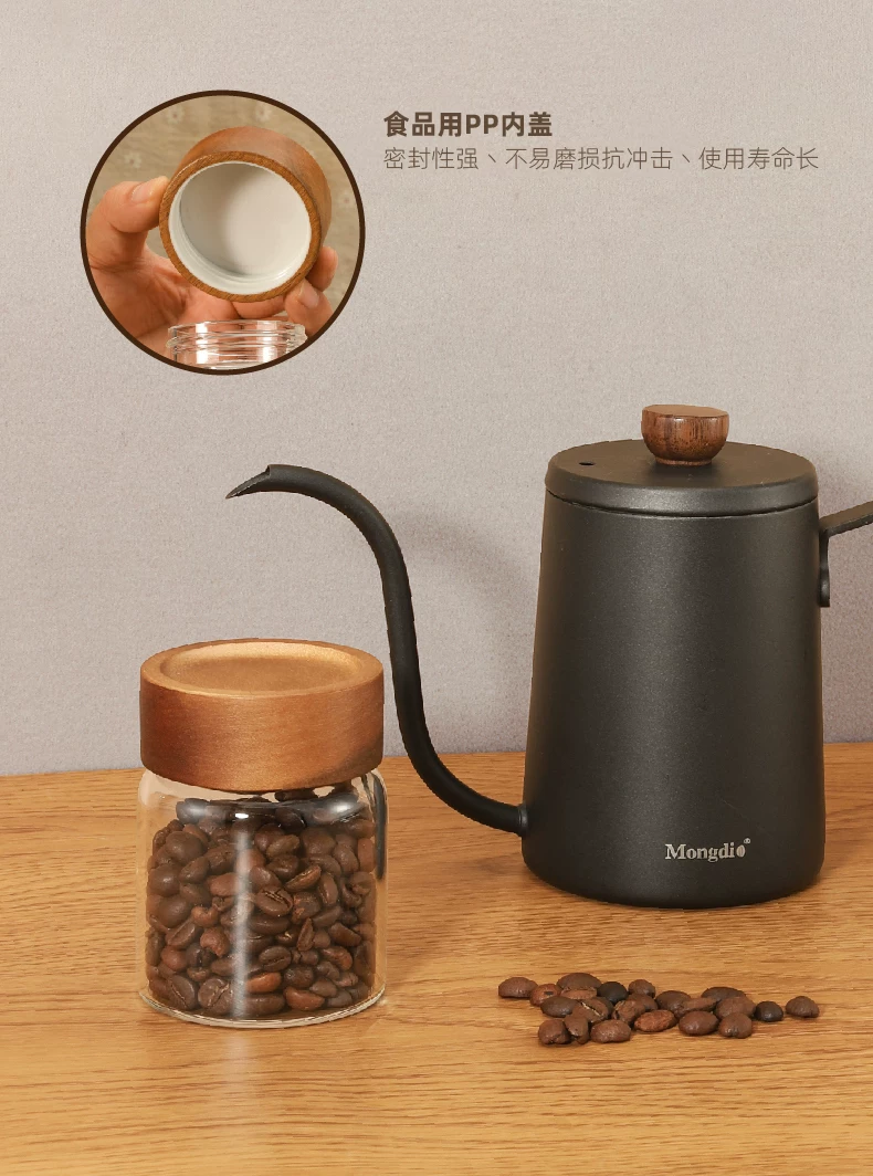 Hũ đựng cà phê bột Mongdio, hũ thủy tinh kín khí, hũ đựng hạt cà phê, hũ trà di động, chai nhỏ đựng đồ khô