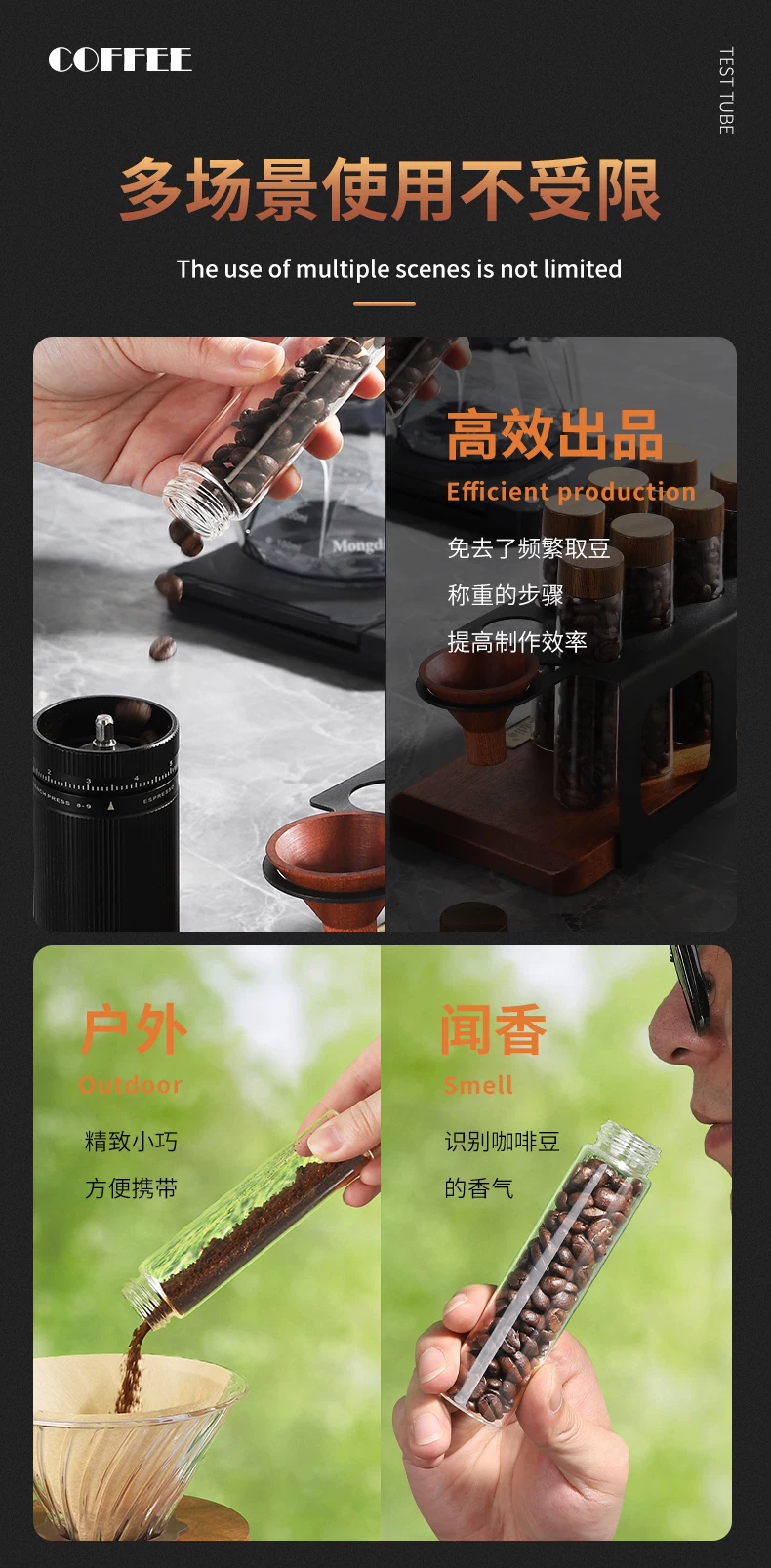 - Hũ đựng cà phê hạt Mongdio, lọ đựng cà phê hạt có nắp đậy, ống nghiệm đựng cà phê, giá trưng bày bằng kính, lọ đựng cà phê