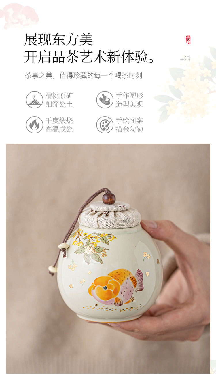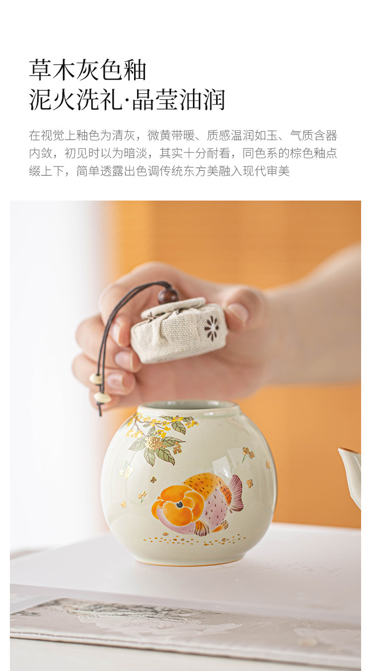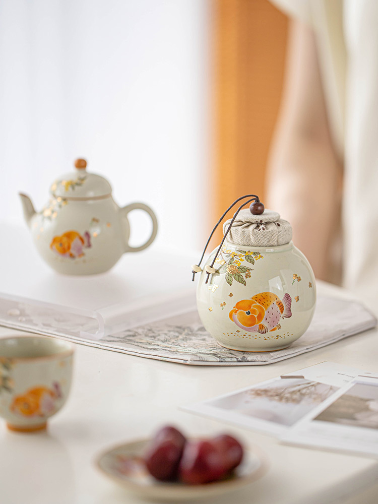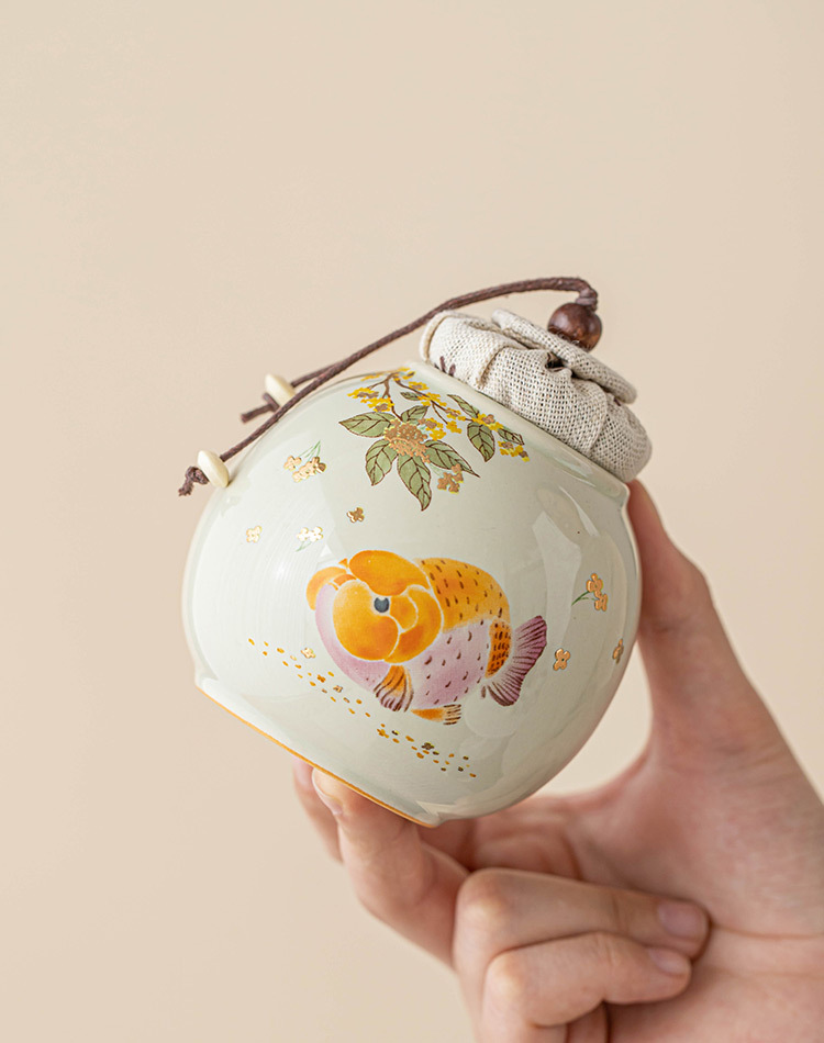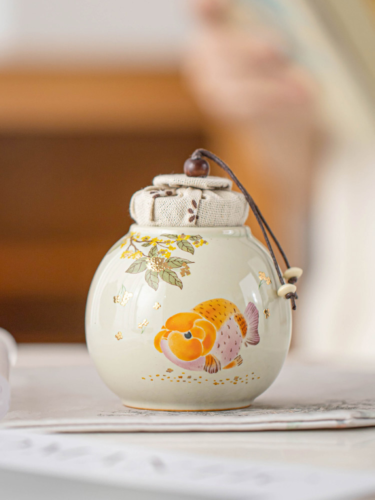 Hũ đựng trà chống ẩm cá vàng thơm, hũ đựng trà cầm tay cỡ nhỏ cao cấp, hũ kín, hũ đựng trà kiểu Trung Quốc mới, hũ rỗng