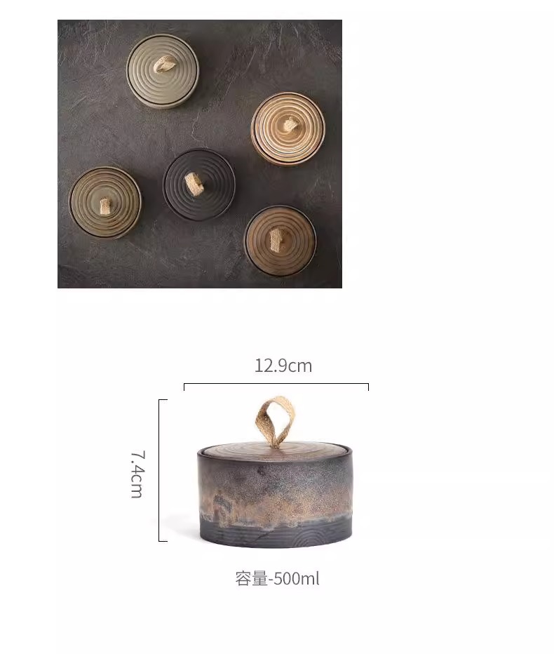 - Hũ đựng trà cổ cổ điển đựng đồ gia dụng hũ đựng trà trà Pu'er bọc kín bằng gốm thô cá tính có nắp thủ công kiểu Trung Quốc
