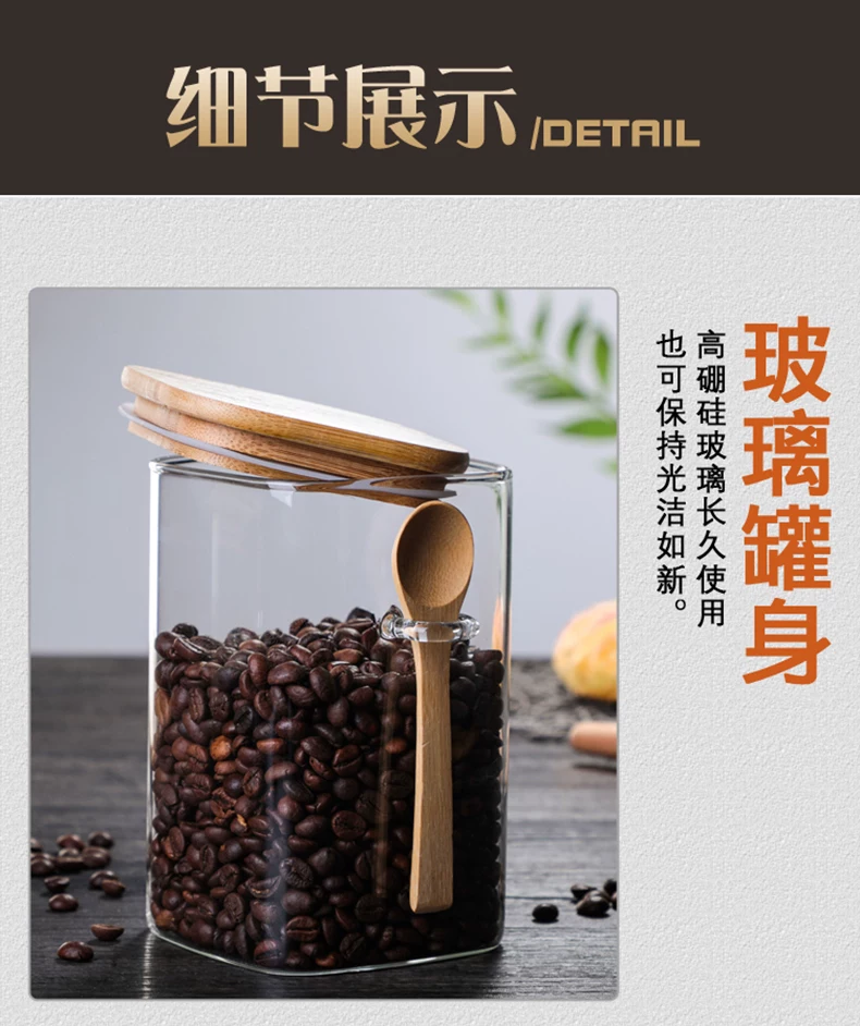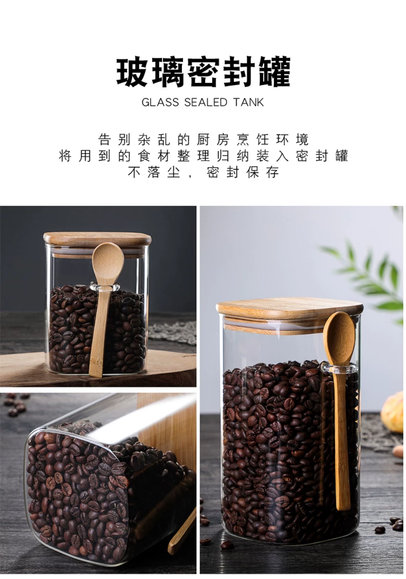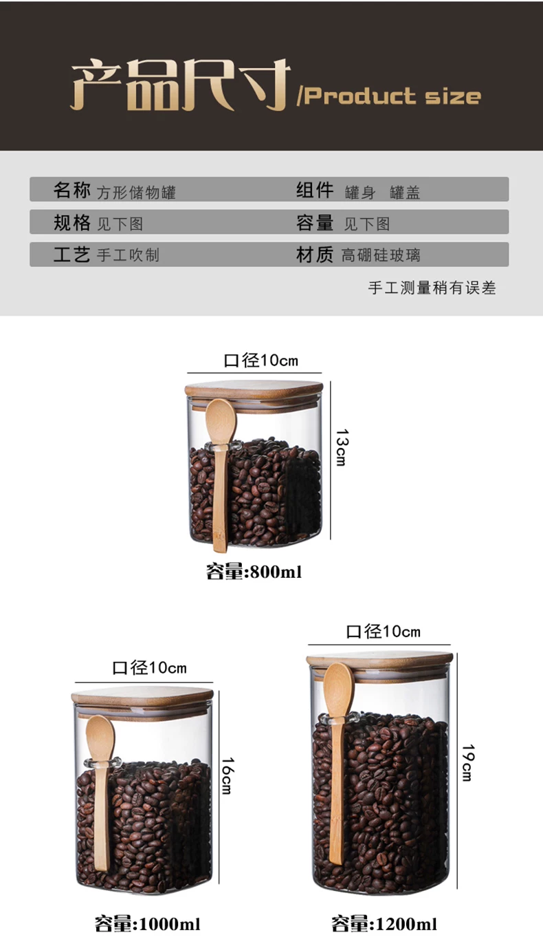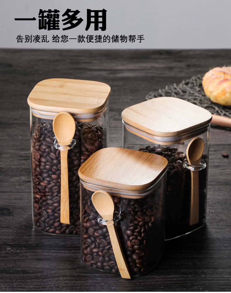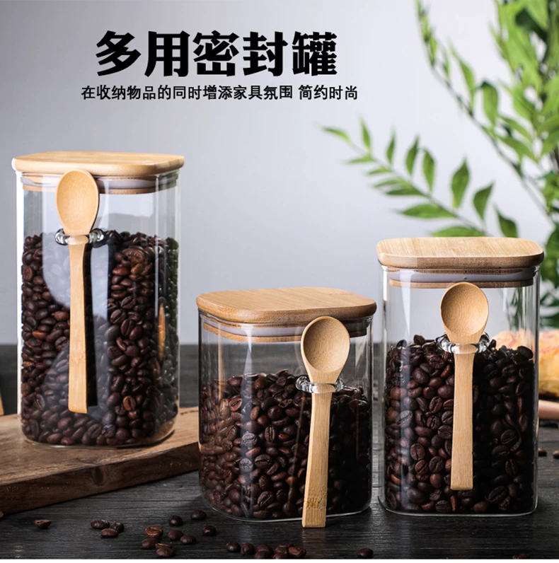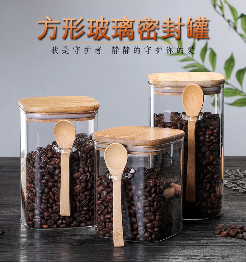 Hũ thủy tinh vuông kiểu Nhật, kín khí, dùng để đựng cà phê, sữa bột, trà, thực phẩm gia dụng