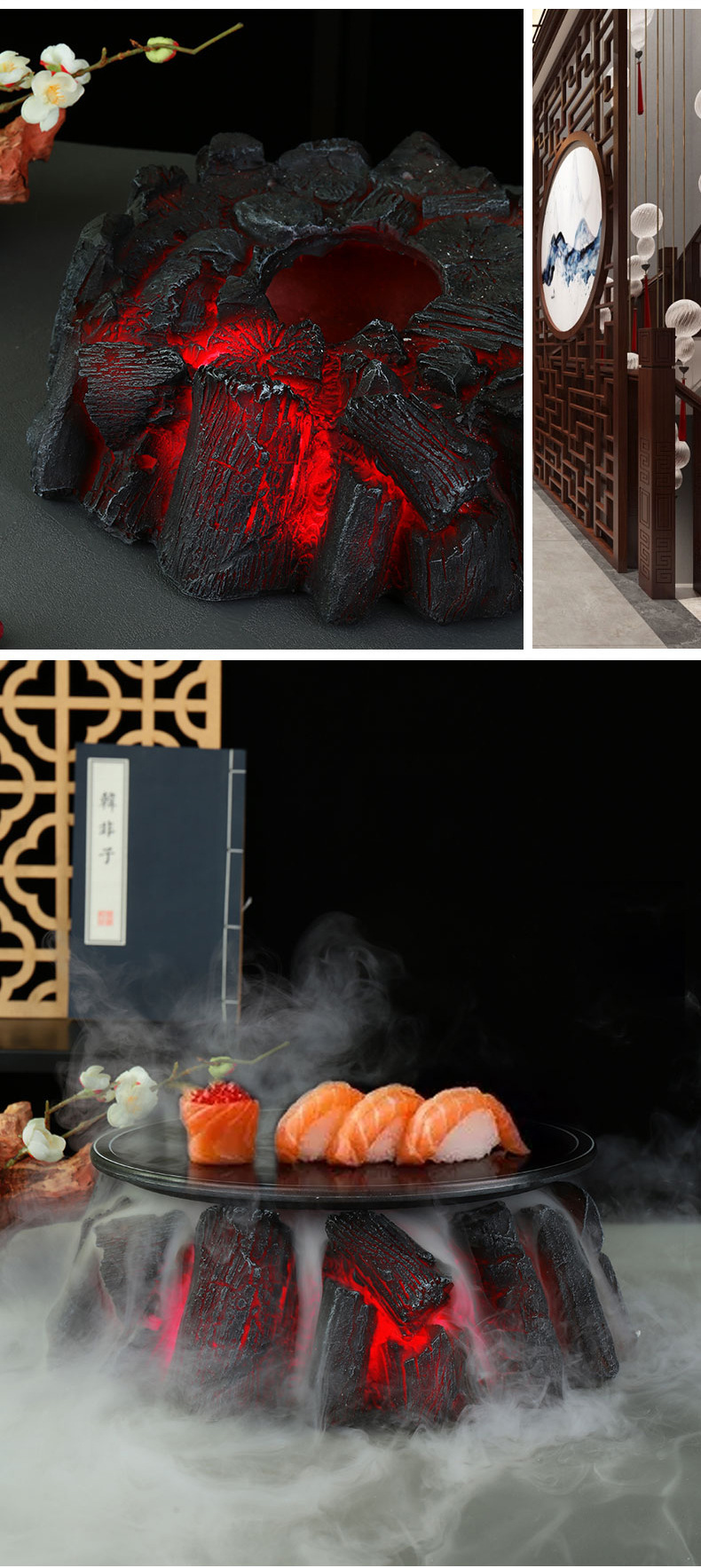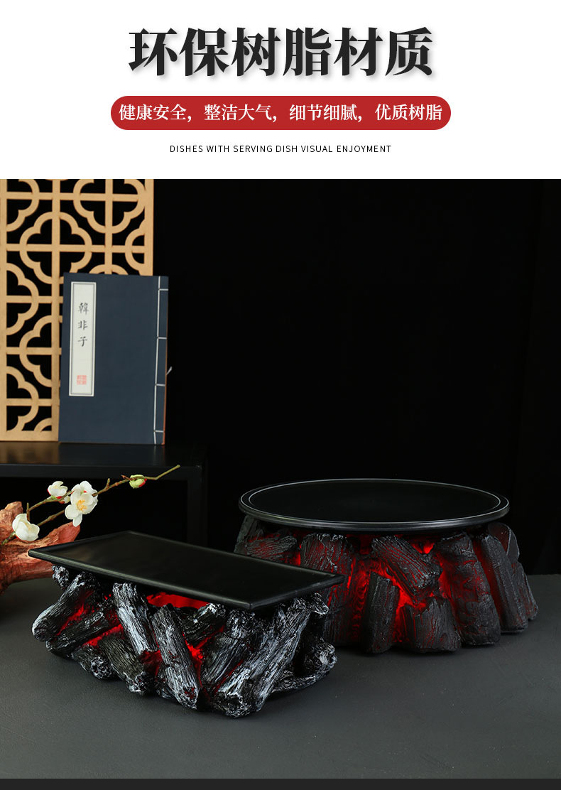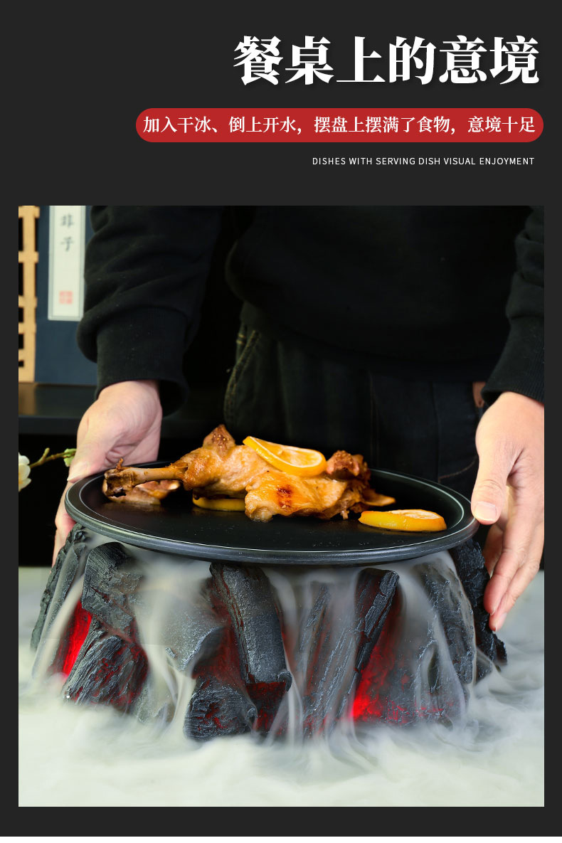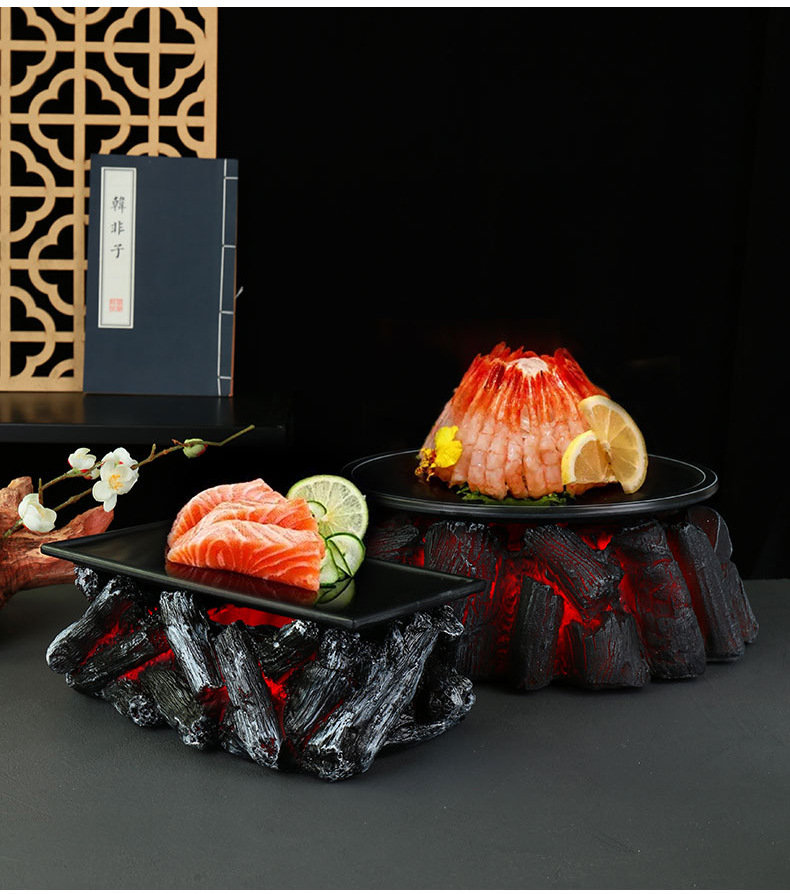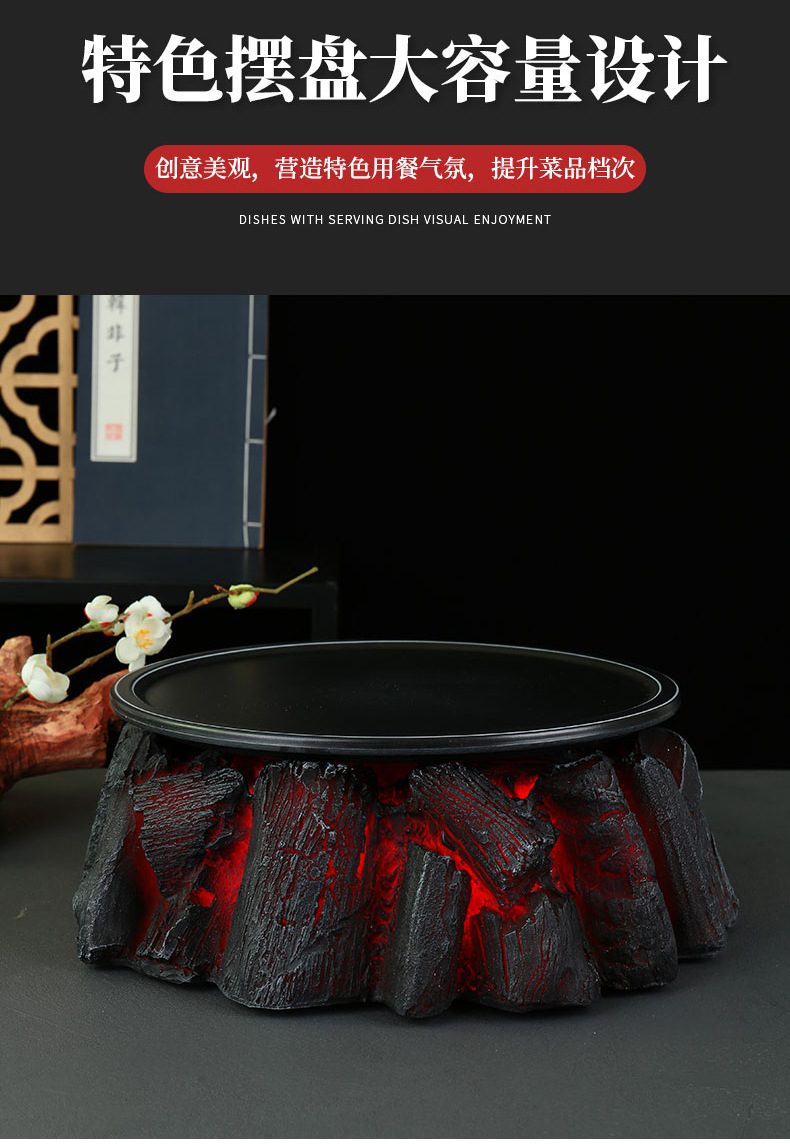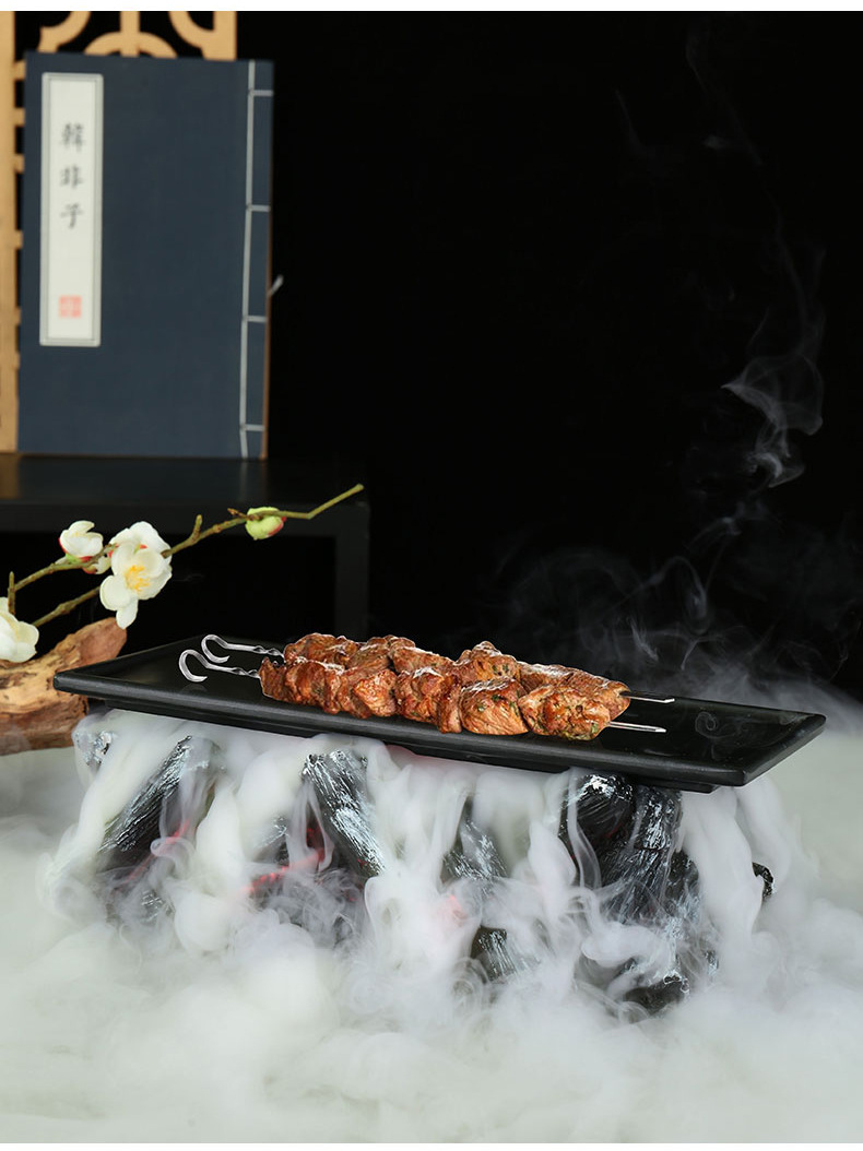 Huoyanshan sườn đĩa đá khô bộ đồ ăn bày bàn trang trí đồ nướng lửa sáng tạo đặc trưng khách sạn sẽ bốc khói nổi tiếng trên mạng