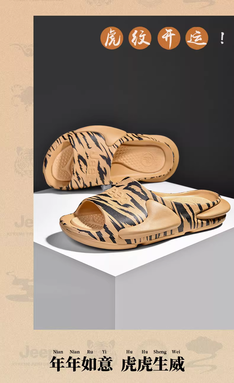 - JEEP/Jeep nam mùa hè mới in hình hổ thời trang hợp thời trang dép xỏ ngón đi biển ngoài trời đế dày chống mài mòn