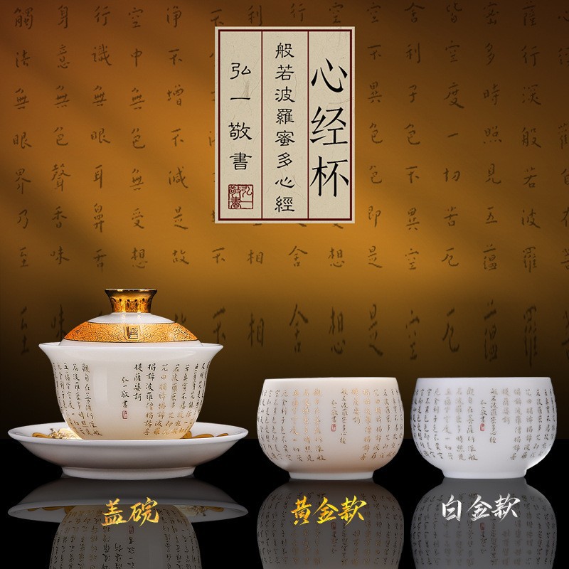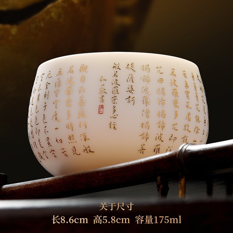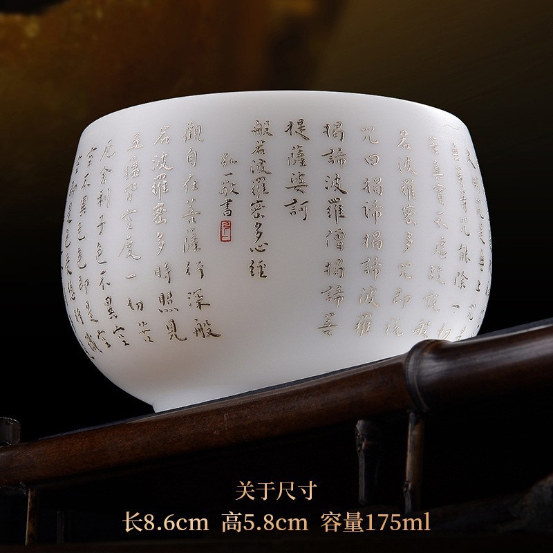 - Jiangxian Hongyi Heart Sutra Cup Master Cup Master Sheep Jade Cup Tách trà nam cao cấp Xu Jianyong