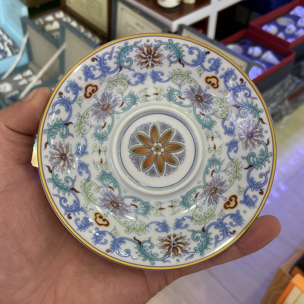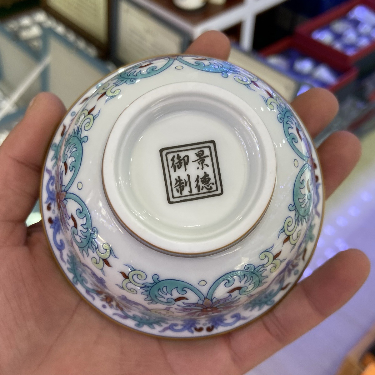 - Jingdezhen gốm sứ cổ bùn xô màu vẽ vàng xung quanh cành sen ba chỉ có nắp bát Bộ trà Kung Fu đơn bát trà tách trà