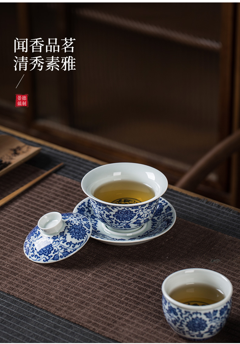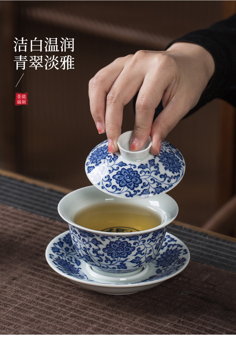 Jingdezhen Liuzhilian Sancai có thể có bát trà cốc đơn bát trà bộ trà Kung Fu bán buôn dụng cụ pha trà chống bỏng