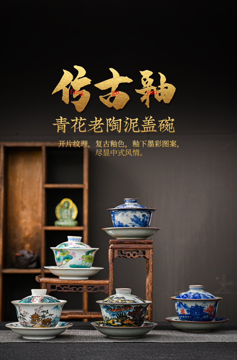 Jingdezhen màu xanh và trắng gốm sứ ba tài năng cốc trà bộ trà một bộ trà Kung Fu cao cấp bán buôn bát pha trà có nắp