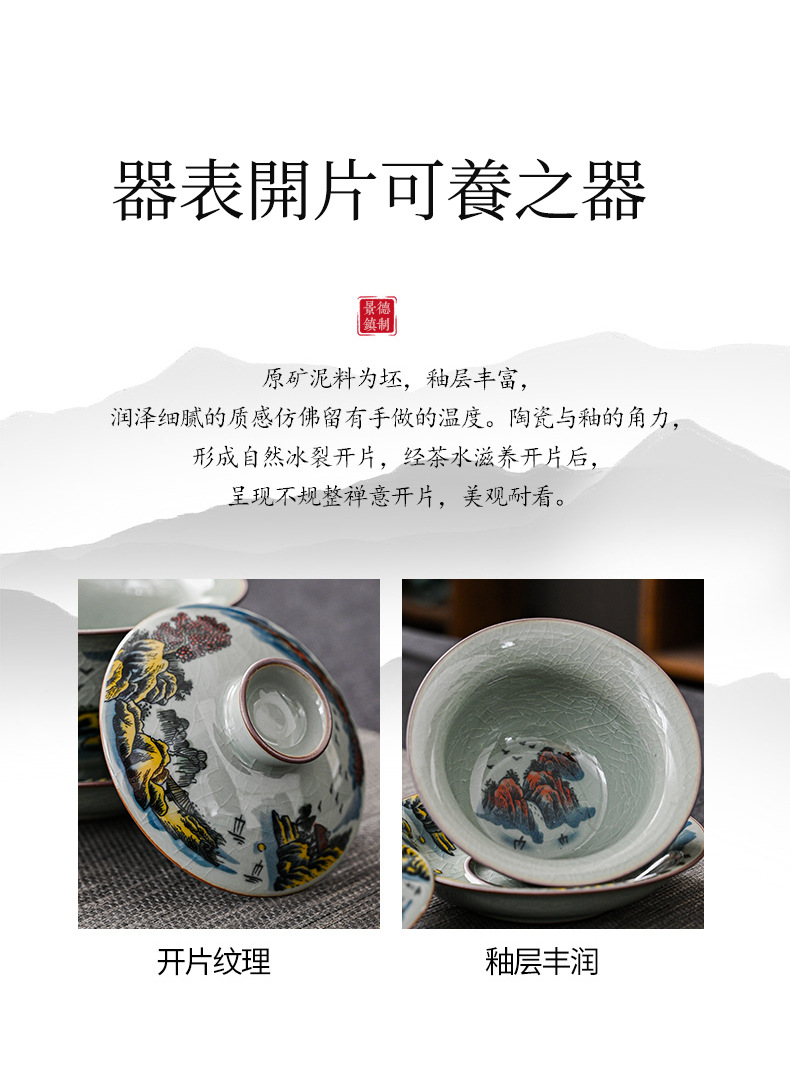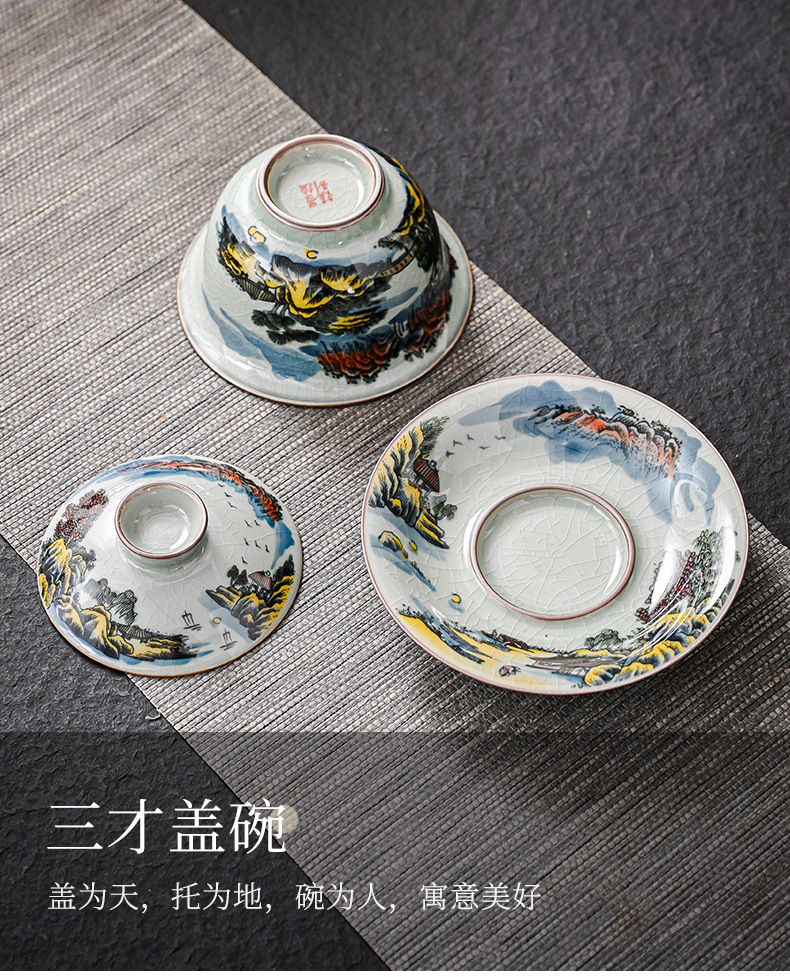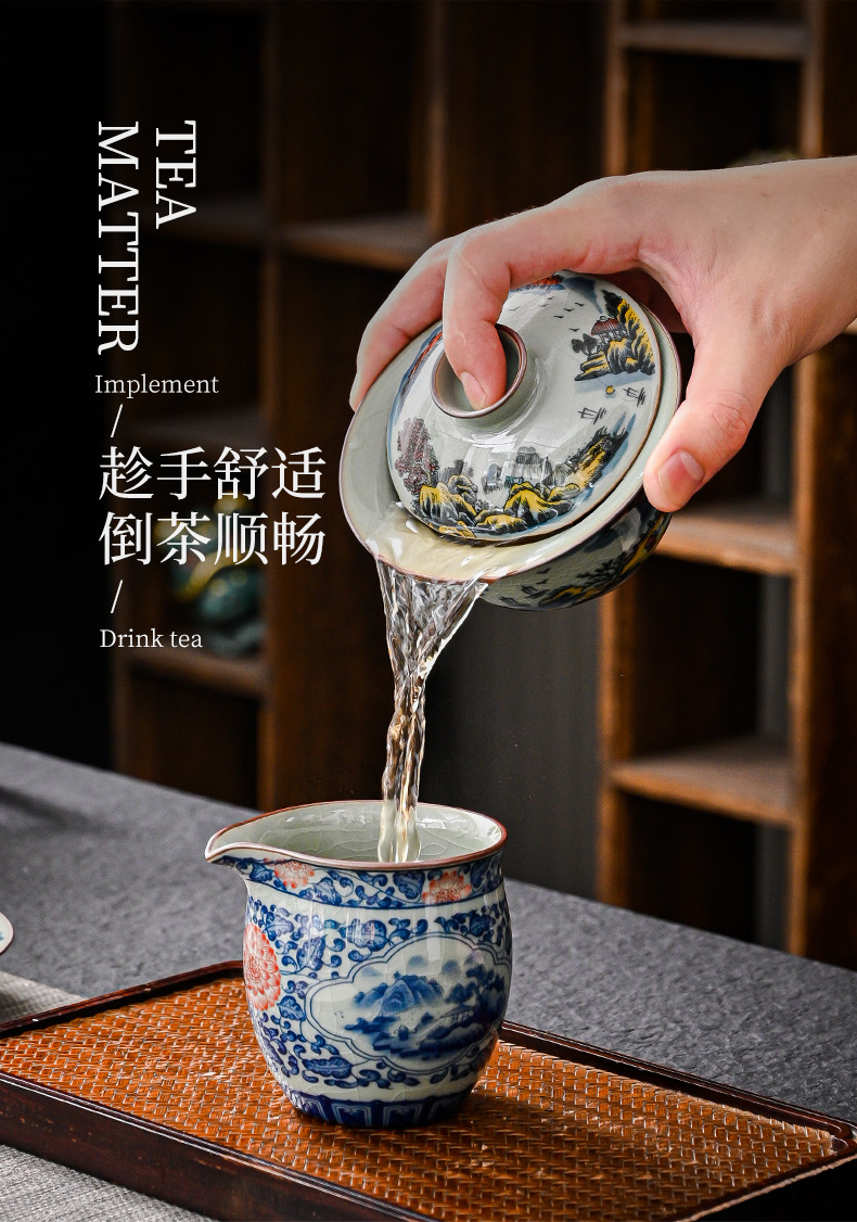 - Jingdezhen màu xanh và trắng gốm sứ ba tài năng cốc trà bộ trà một bộ trà Kung Fu cao cấp bán buôn bát pha trà có nắp