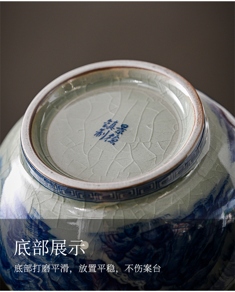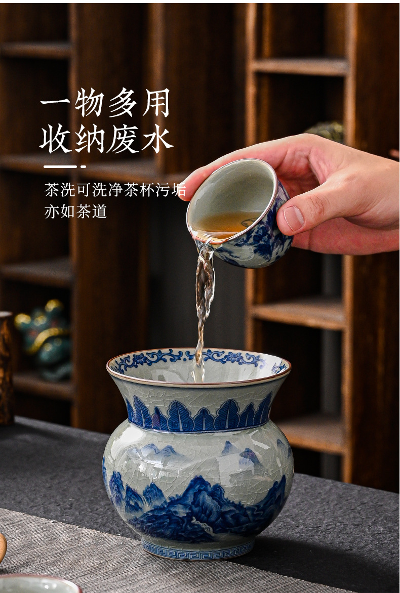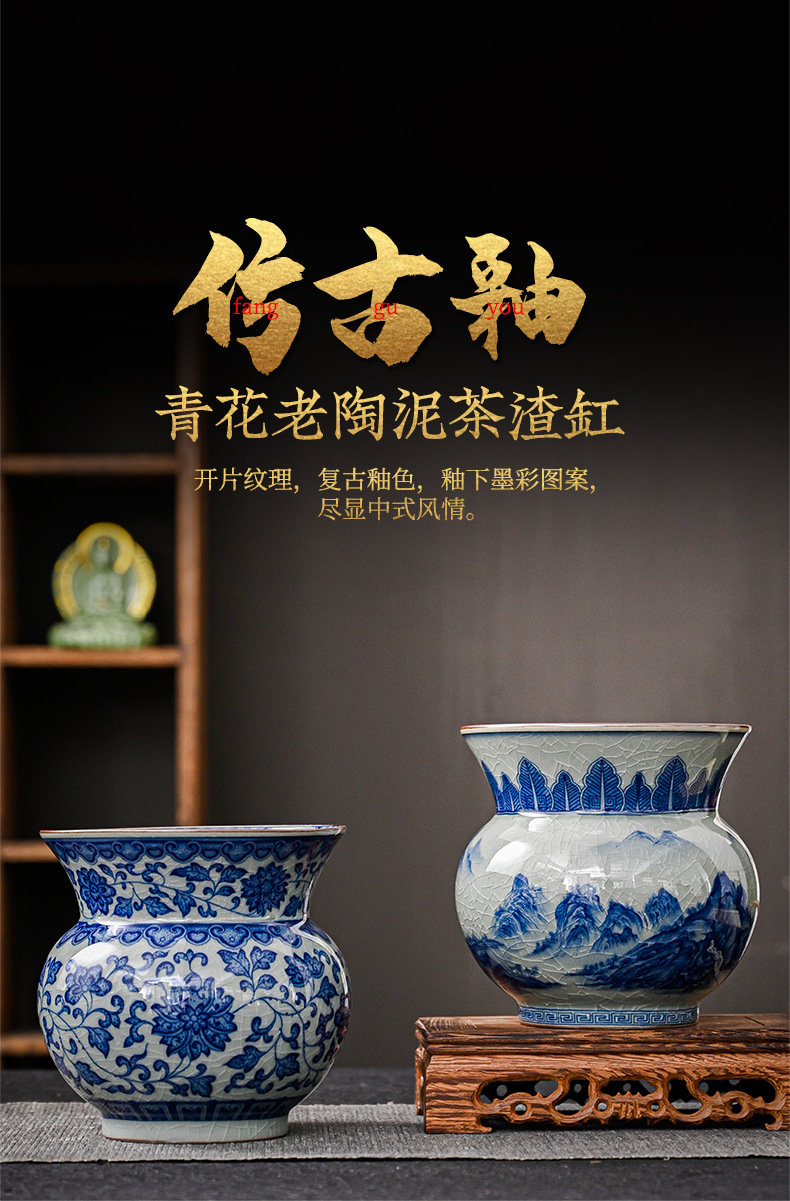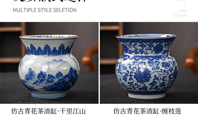 - Jingdezhen màu xanh và trắng sứ cổ điển xây dựng nước rửa trà lớn gốm sứ thùng trà thùng trà thùng trà thùng rác thùng trà