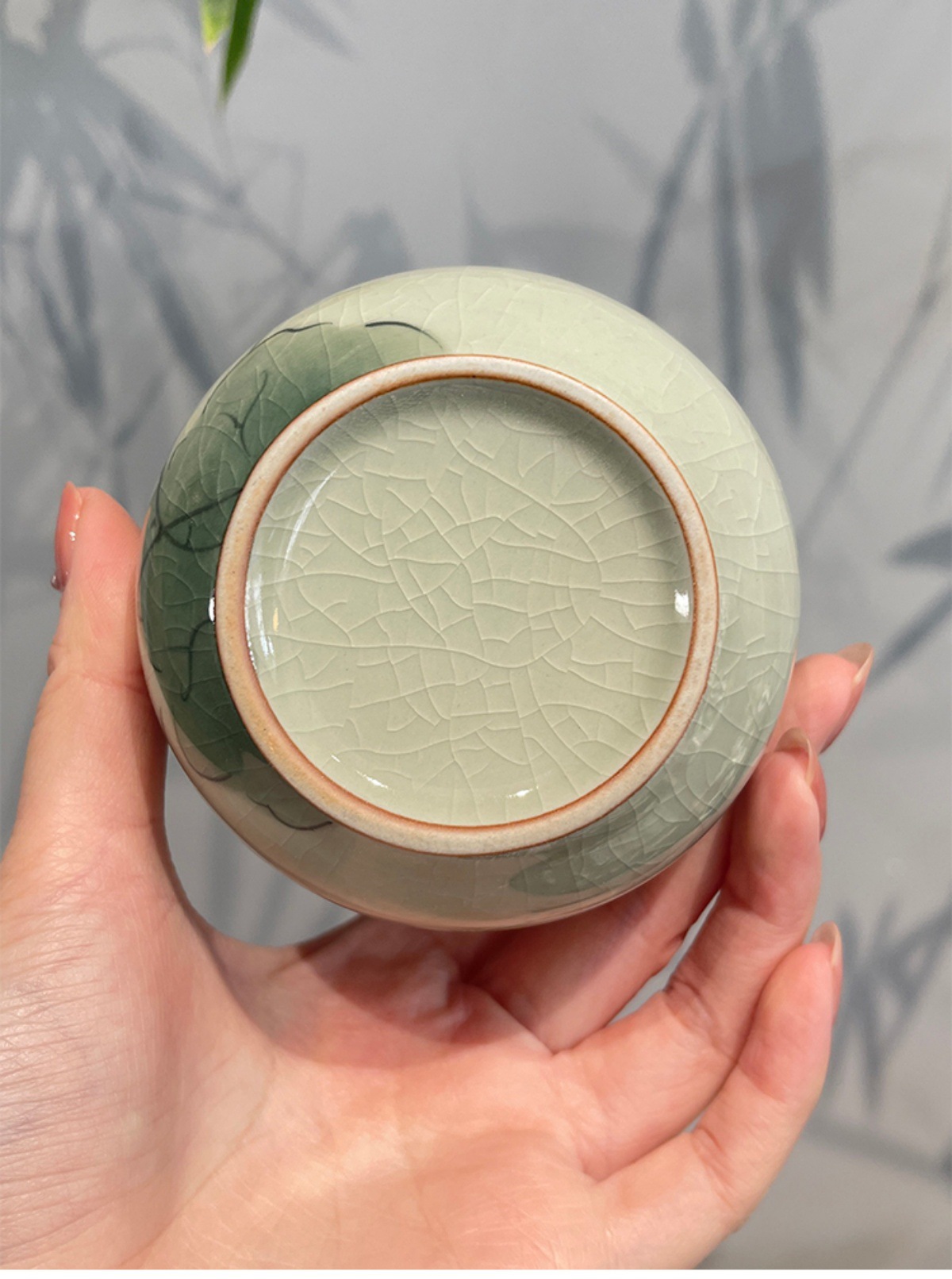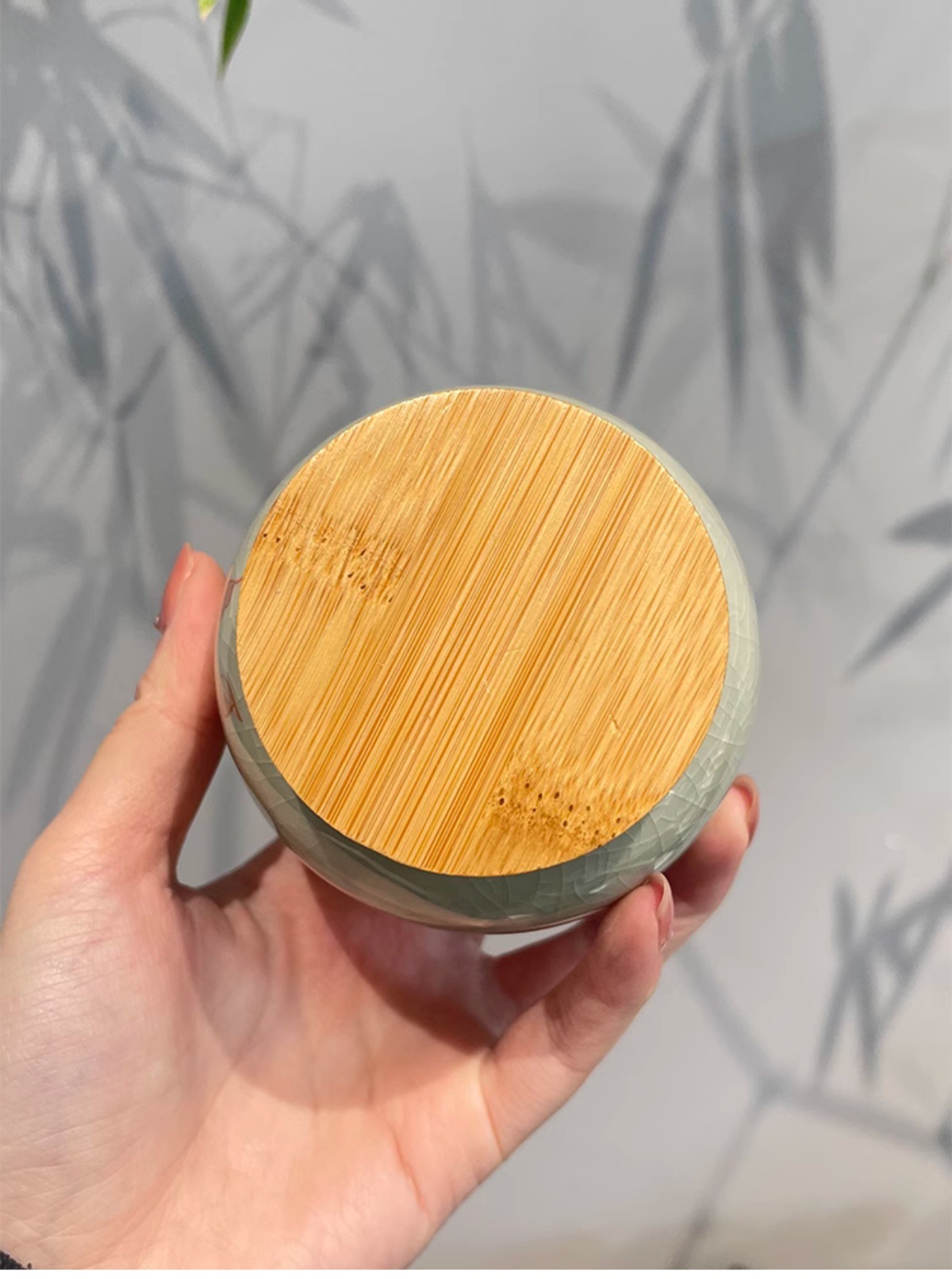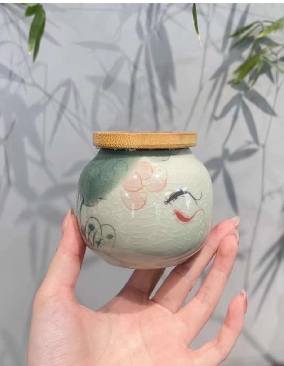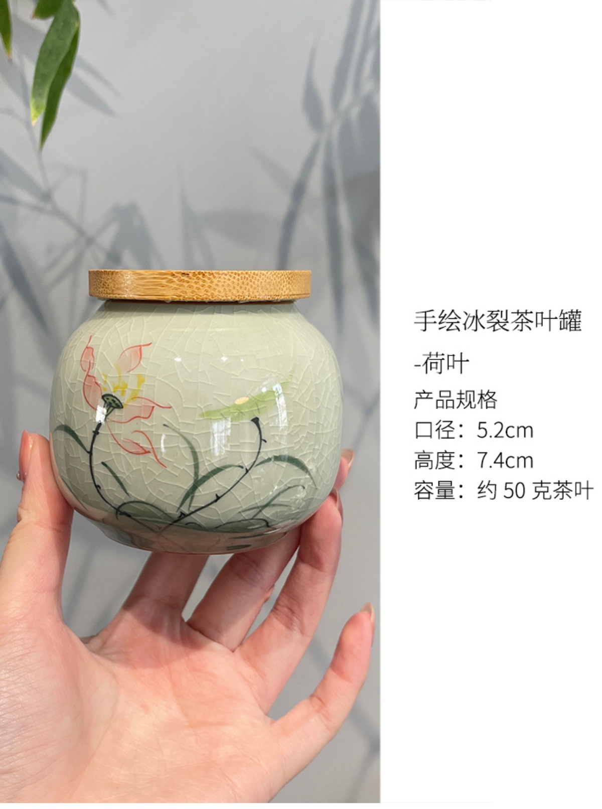 Jingzhe vẽ tay hoa sen nhỏ niêm phong bình trà men nứt băng bình bảo quản trà kiểu Trung Quốc mở nắp trúc ngăn trà chống ẩm