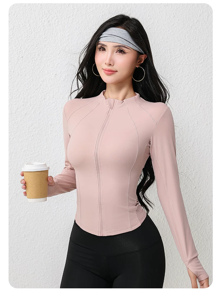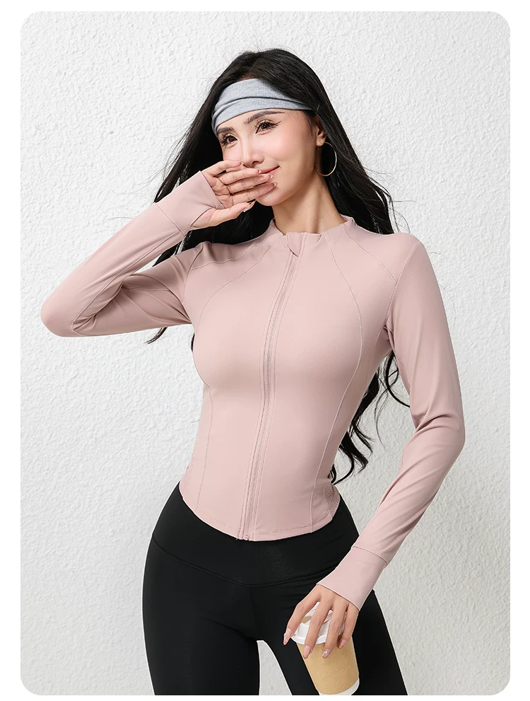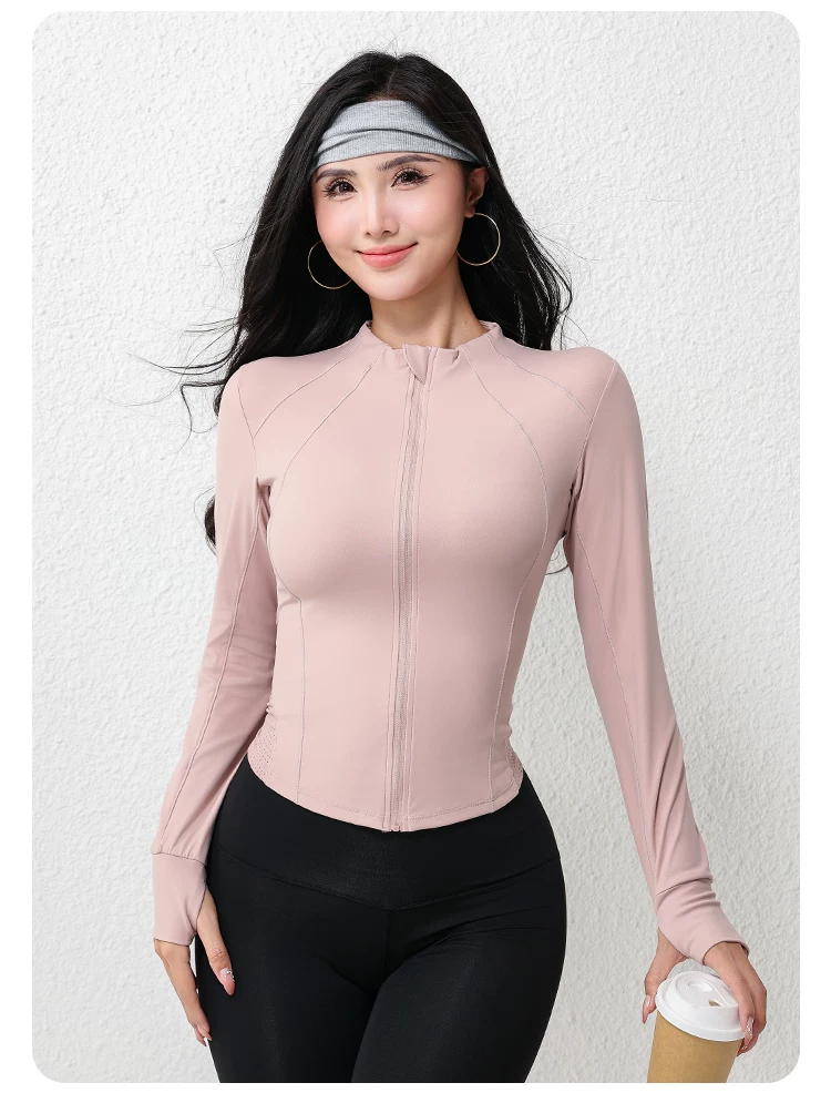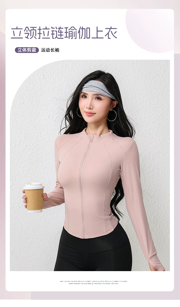 - Jiumai Yipin áo khoác yoga cổ đứng chạy bộ tập Pilates giảm béo thể thao hàng đầu mùa thu đông áo sơ mi dài tay tập thể dục