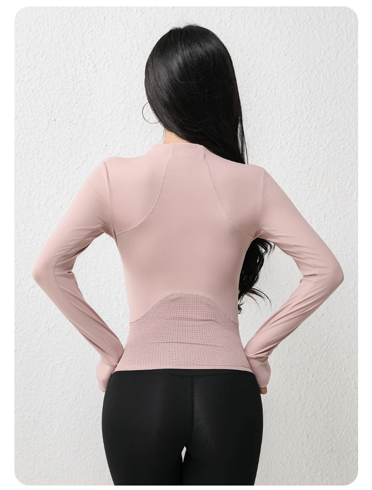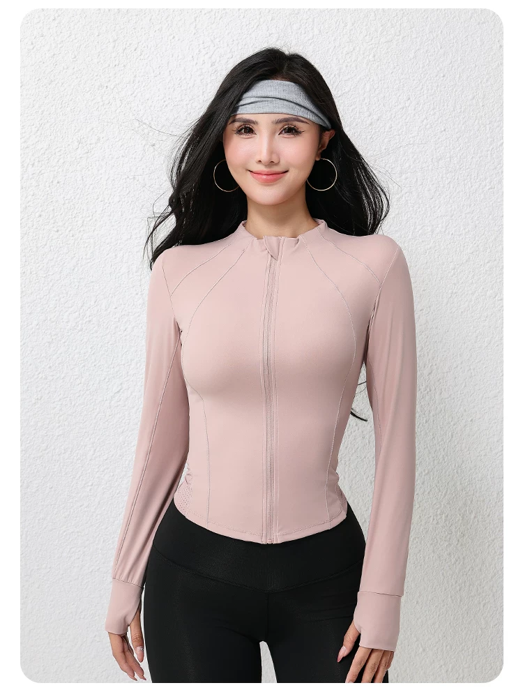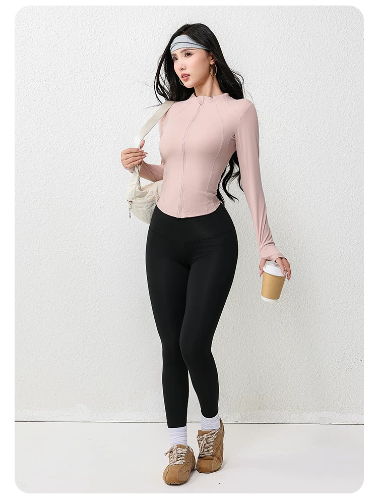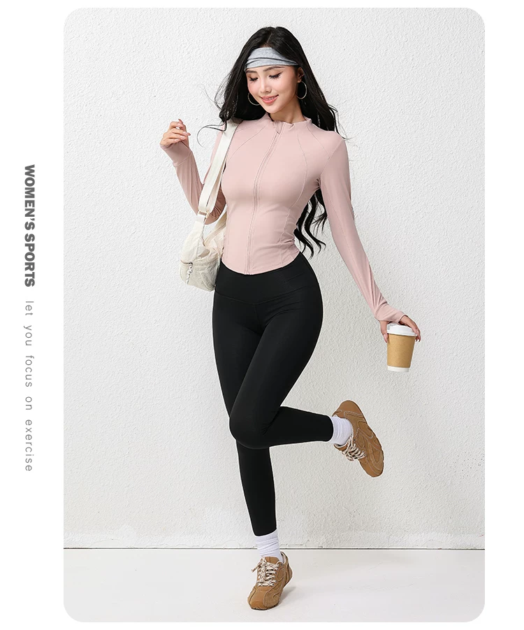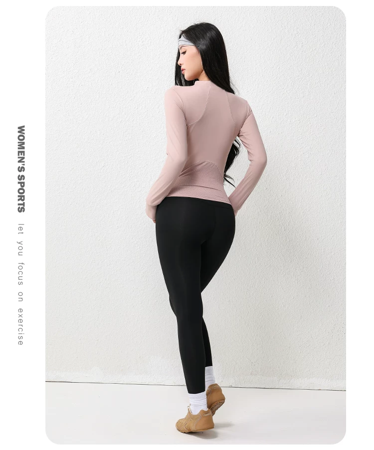 - Jiumai Yipin áo khoác yoga cổ đứng chạy bộ tập Pilates giảm béo thể thao hàng đầu mùa thu đông áo sơ mi dài tay tập thể dục