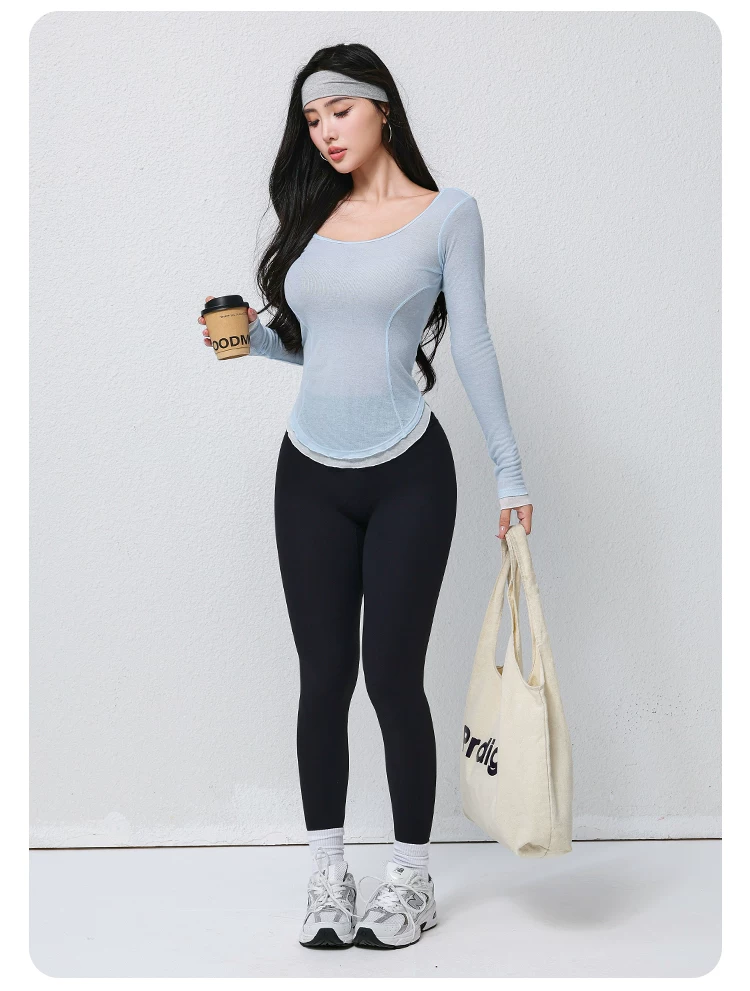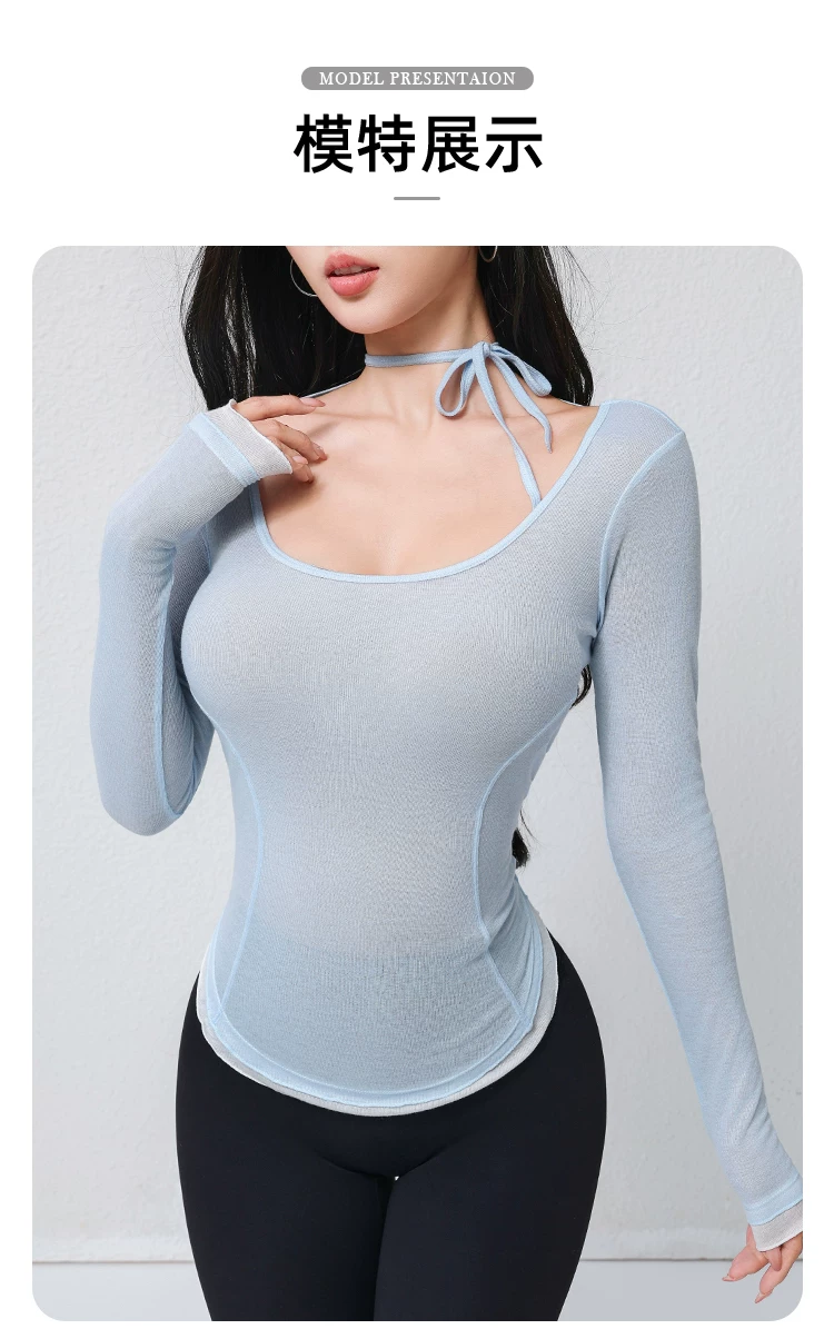 - Jiumai Yipin áo khoác yoga thoáng khí mỏng vừa vặn thể thao tập Pilates chạy bộ dài tay mới.