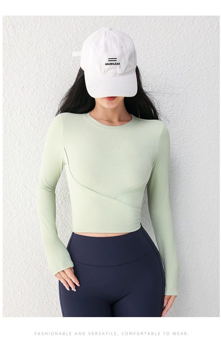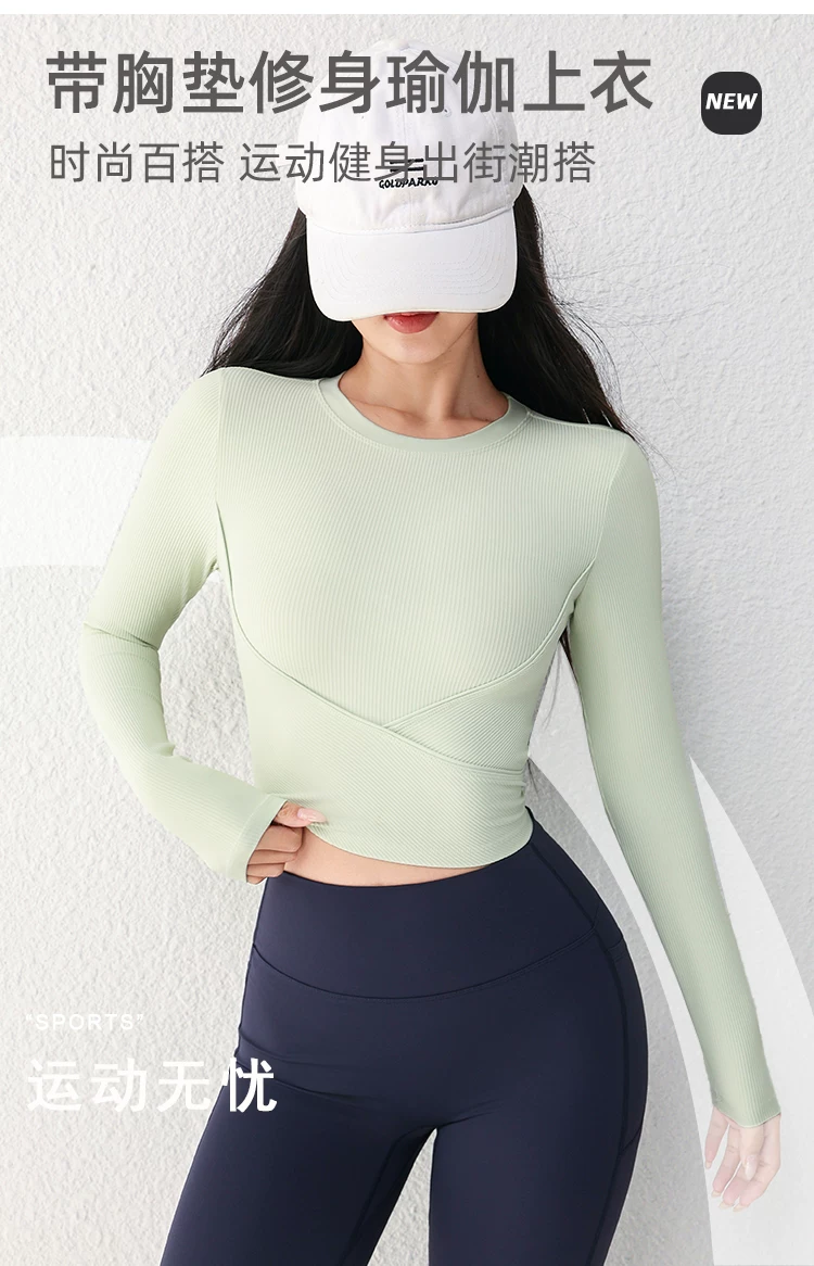Jiumai Yipin Áo tập yoga dài tay mùa thu đông dành cho nữ Slim Fit Thể thao nhanh khô Pilates Tập chạy bộ