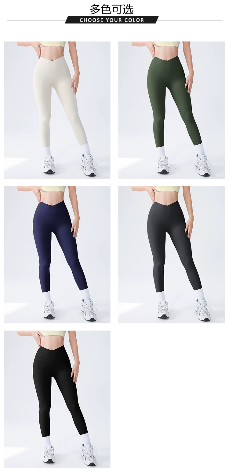 - Jiumai Yipin Quần tập yoga eo chữ V gợi cảm tạo cảm giác trần trụi Quần tập yoga nâng mông đào Quần tập thể dục nhanh khô bó sát Quần chạy bộ thể thao dành cho nữ