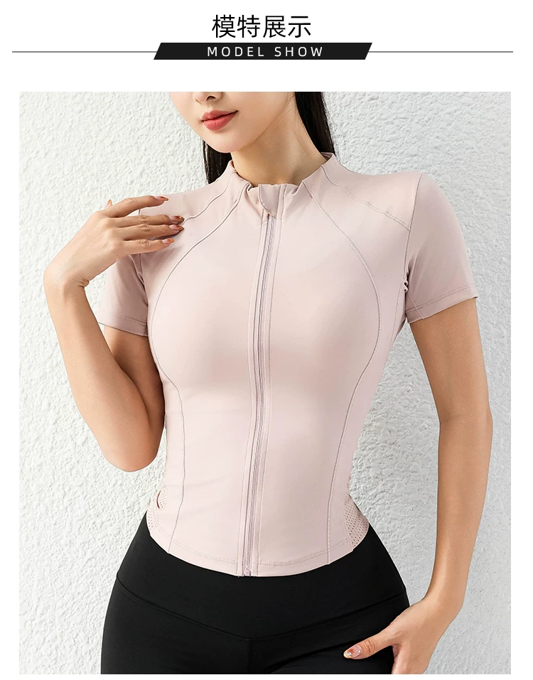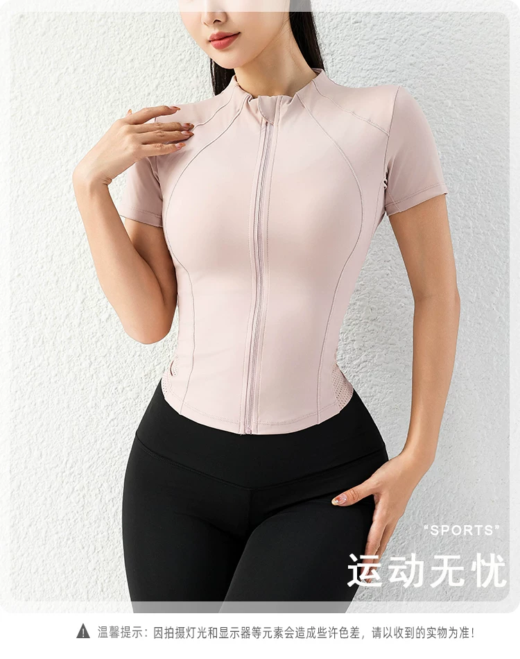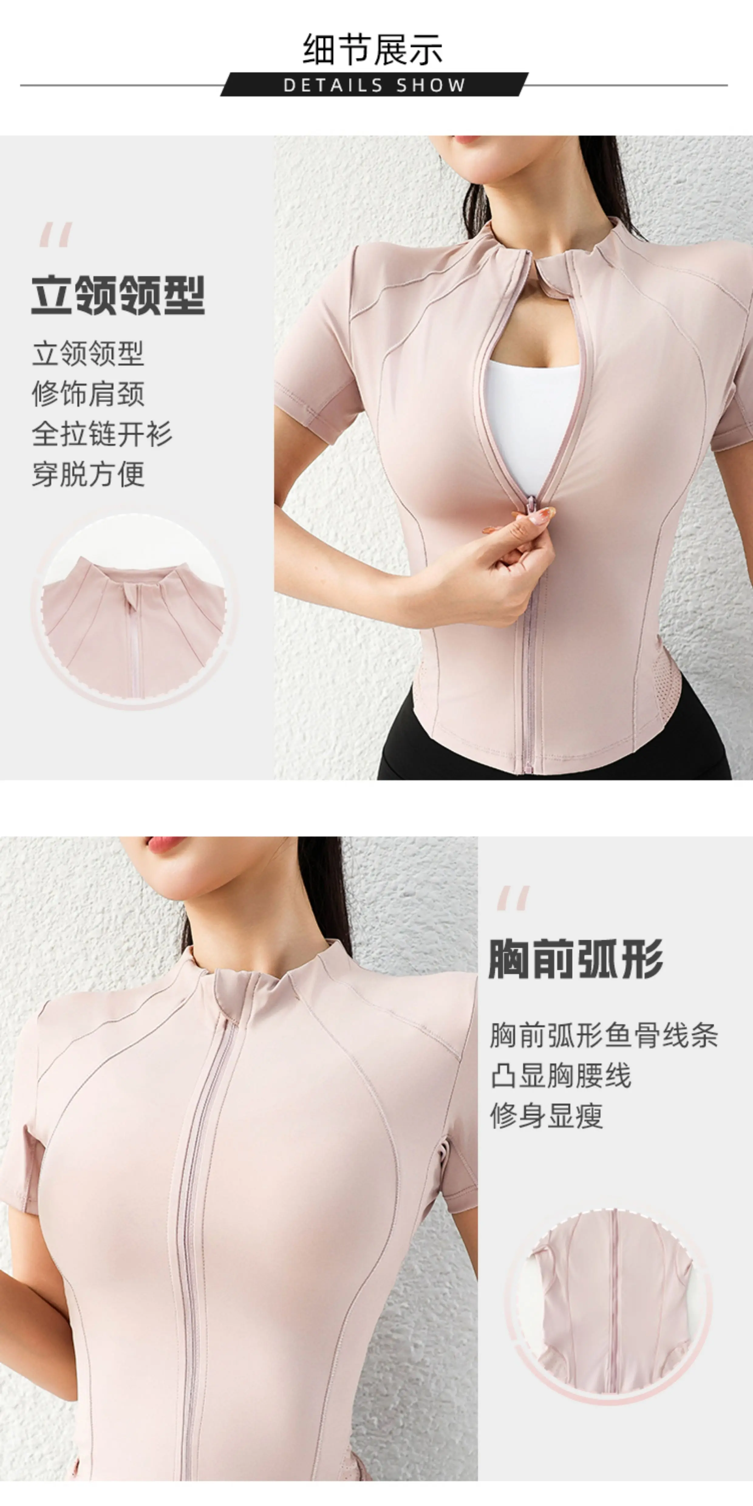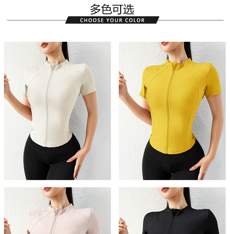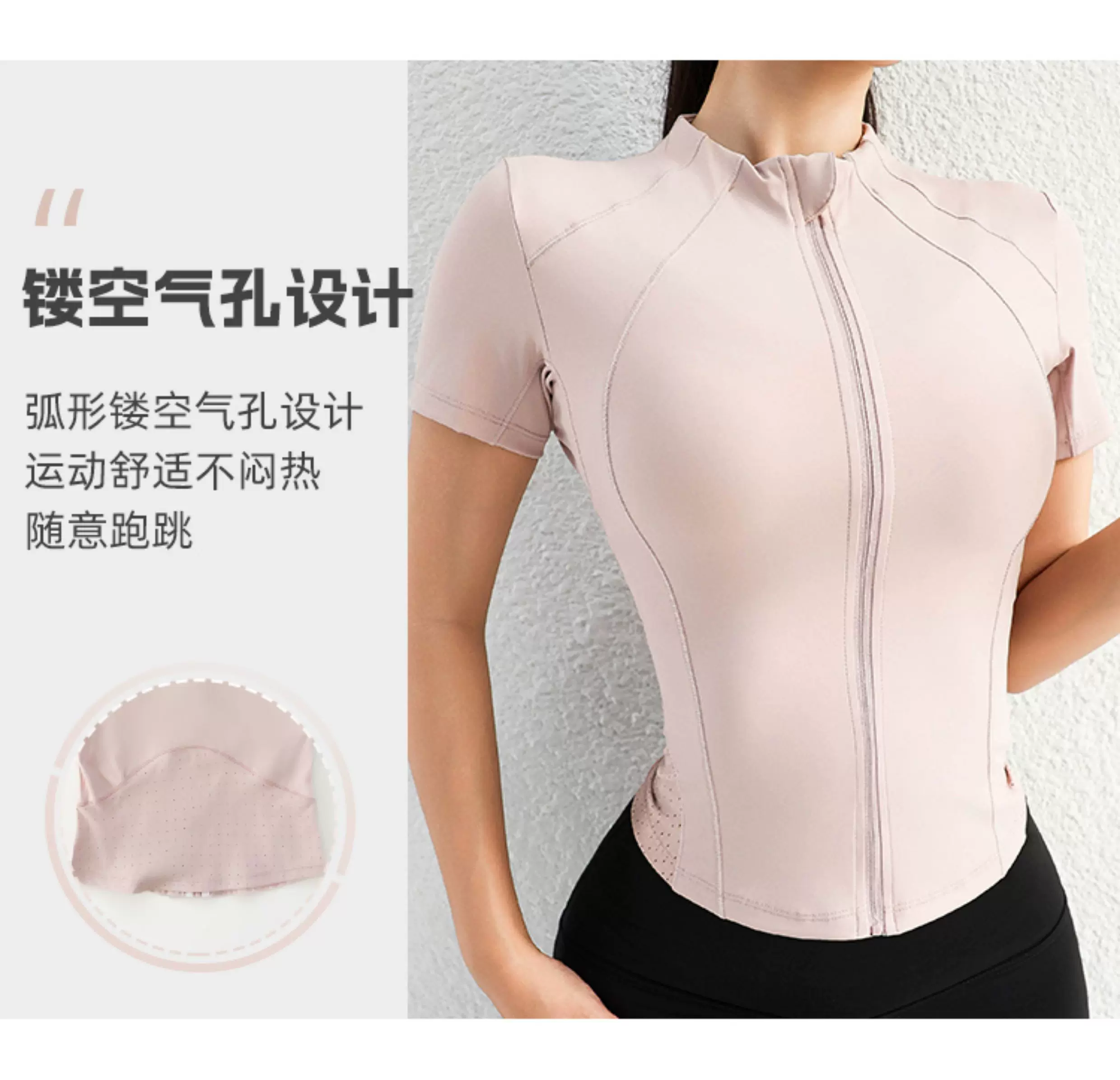 - Jiumai Yipin Zipper Yoga Áo thun ngắn tay Slim Fit nhanh khô Áo thun chạy bộ mỏng thoáng khí cho mùa hè.