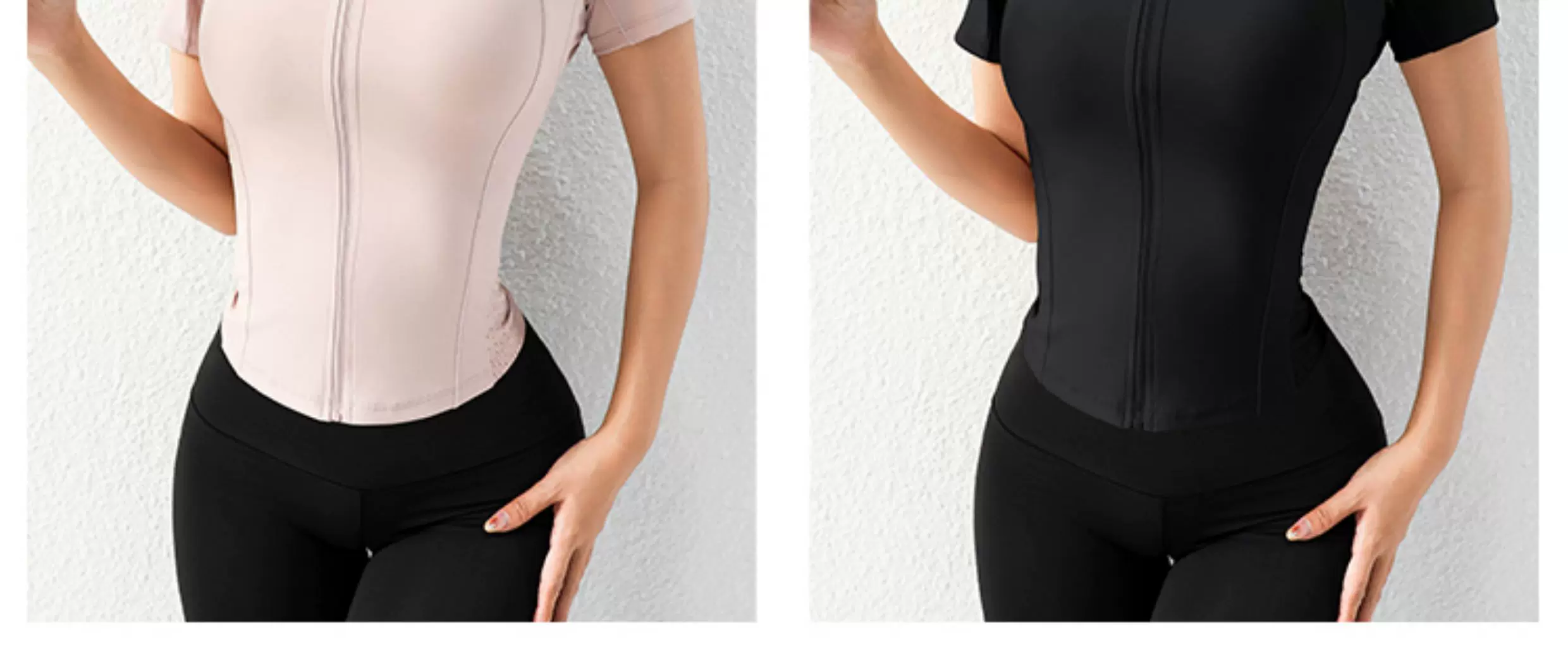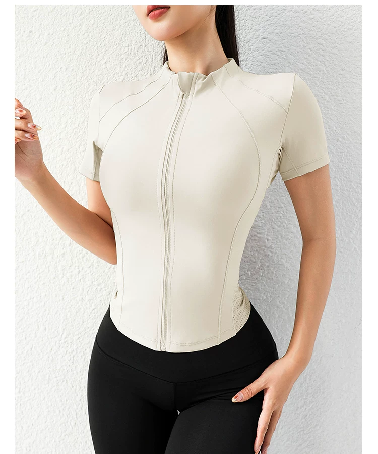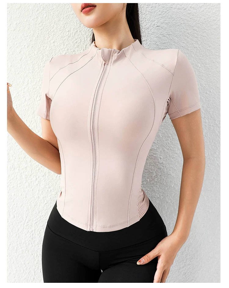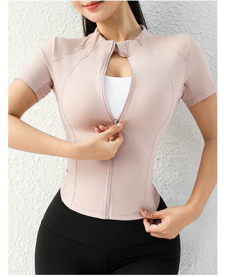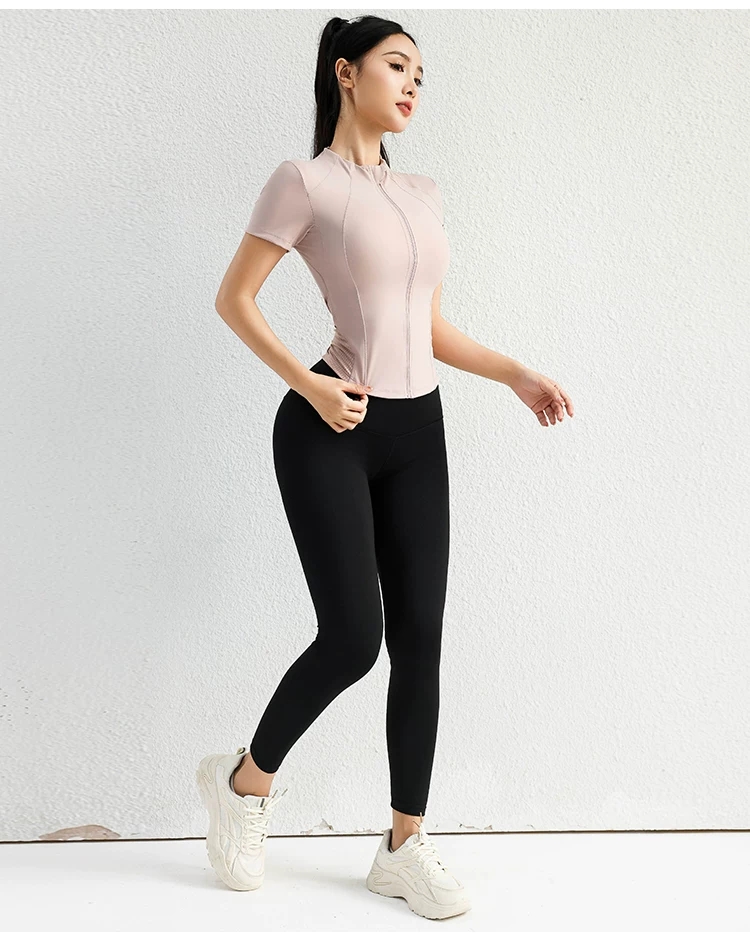 - Jiumai Yipin Zipper Yoga Áo thun ngắn tay Slim Fit nhanh khô Áo thun chạy bộ mỏng thoáng khí cho mùa hè.