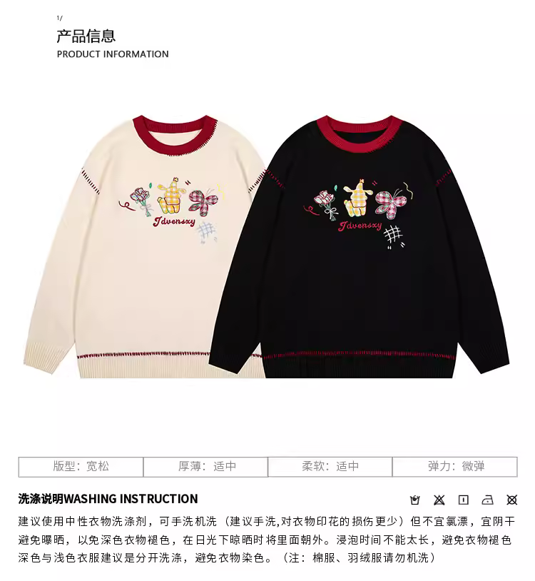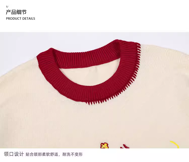 - K787 Áo len thêu phong cách retro đại học kiểu Mỹ dành cho nam và nữ, áo len đôi phối màu phong cách Nhật Bản