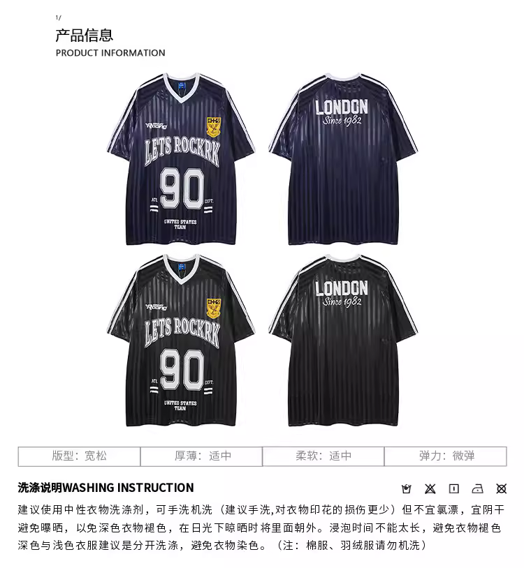 K787 Áo thun ngắn tay kiểu Mỹ cổ điển sọc blokecore unisex thể thao đa năng cổ chữ V áo thun cặp đôi